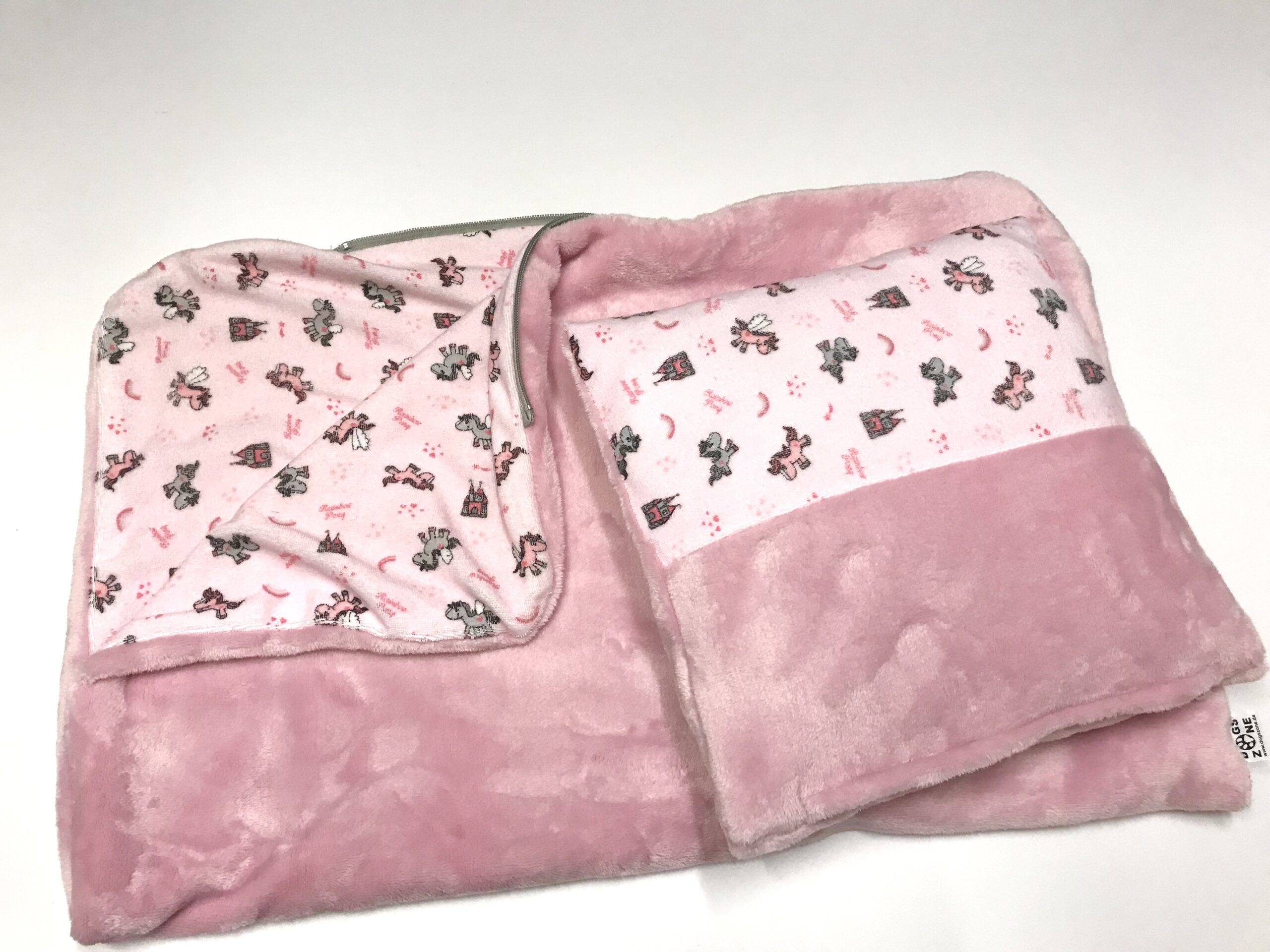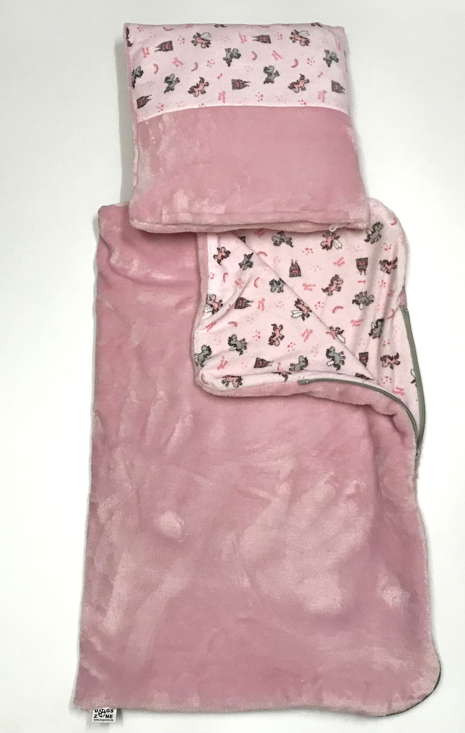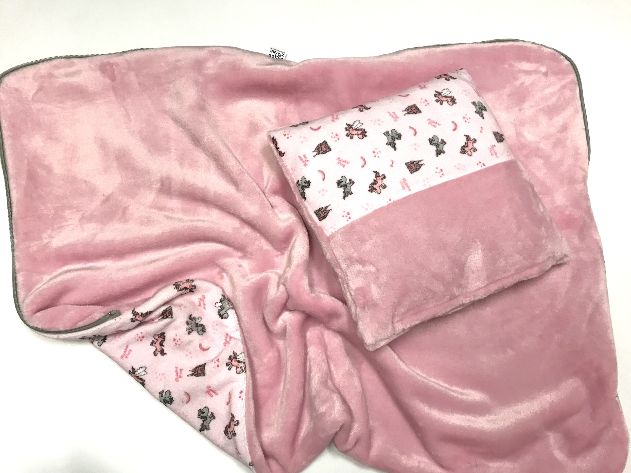 Eine Seite besteht aus Frottestoff,andere aus Wellness-Flausch.das ganze lässt sich zu eine Schlafsack verwandeln