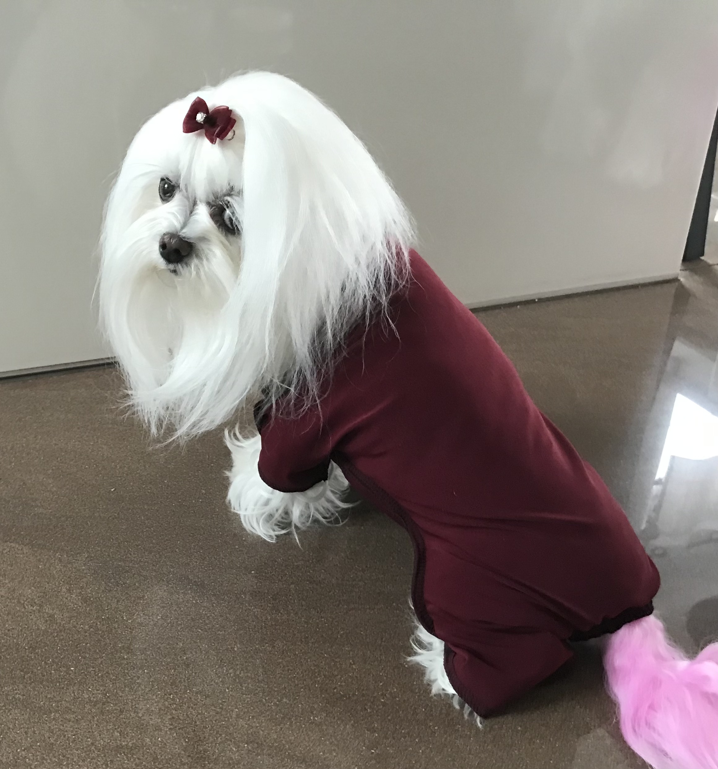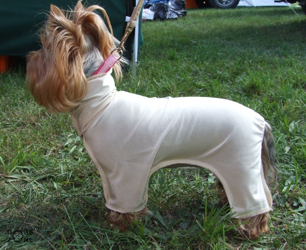 Dieser Wickelanzug ist unerlässlich für die Pflege Ihres Ausstellungshundes. Die Nähte sind auf der rechten Seite, damit die Haare nicht verfilzen.