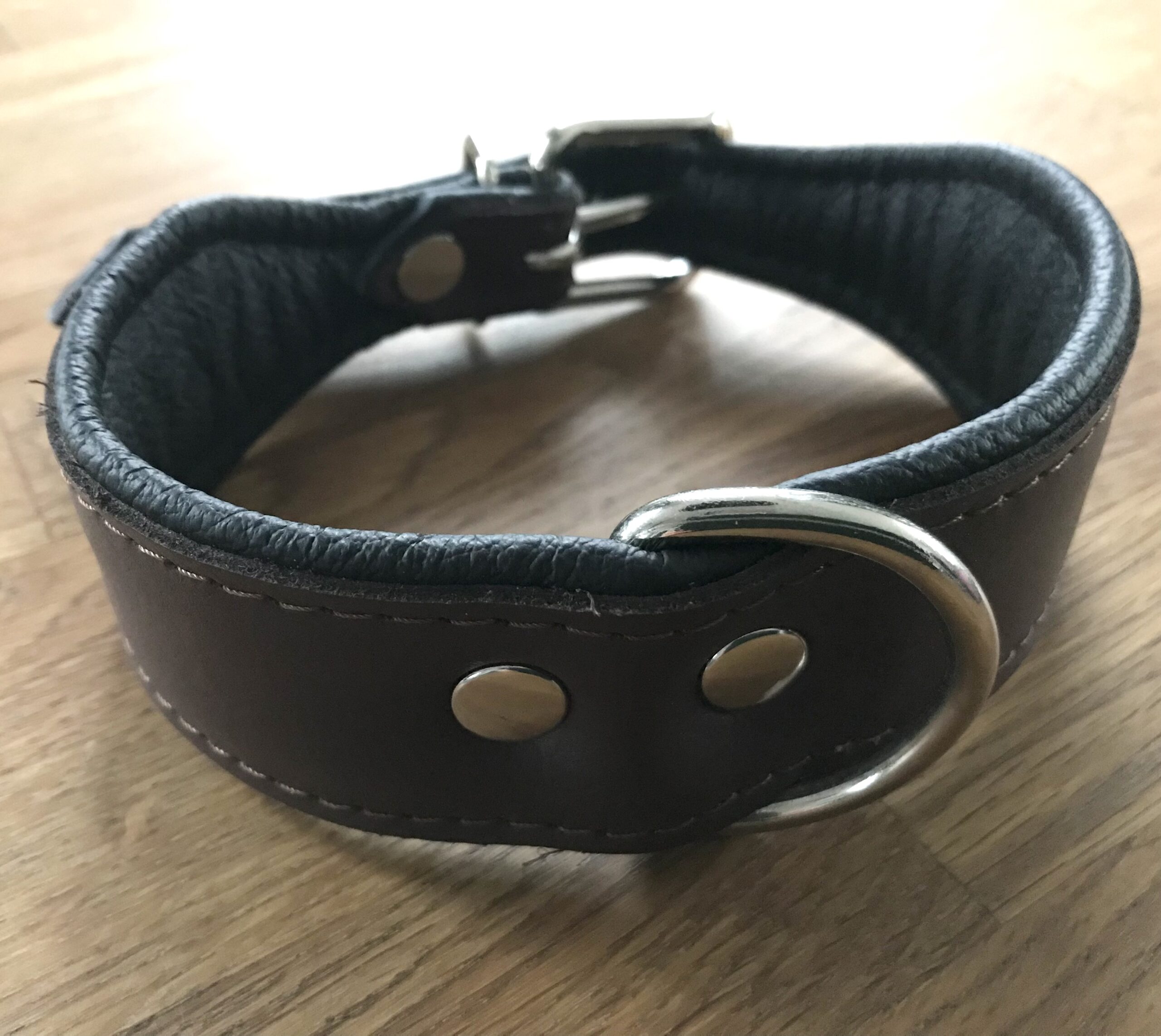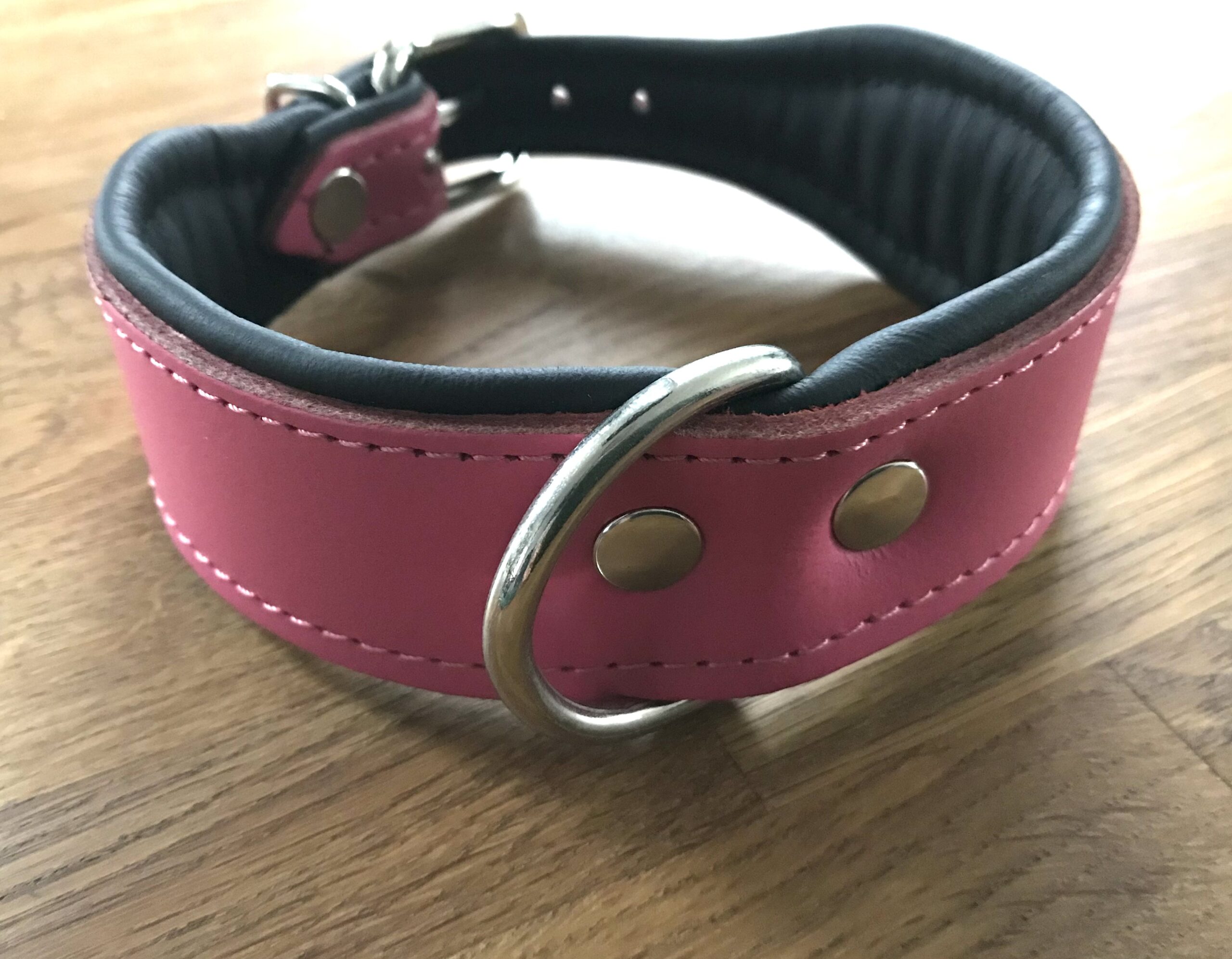 Wunderschönes,Breites Echtlederhalsband aus 3mm starkem Rindleder Gurt.Das Oberleder ist  mit einem weichen Nappaleder unterfütter-