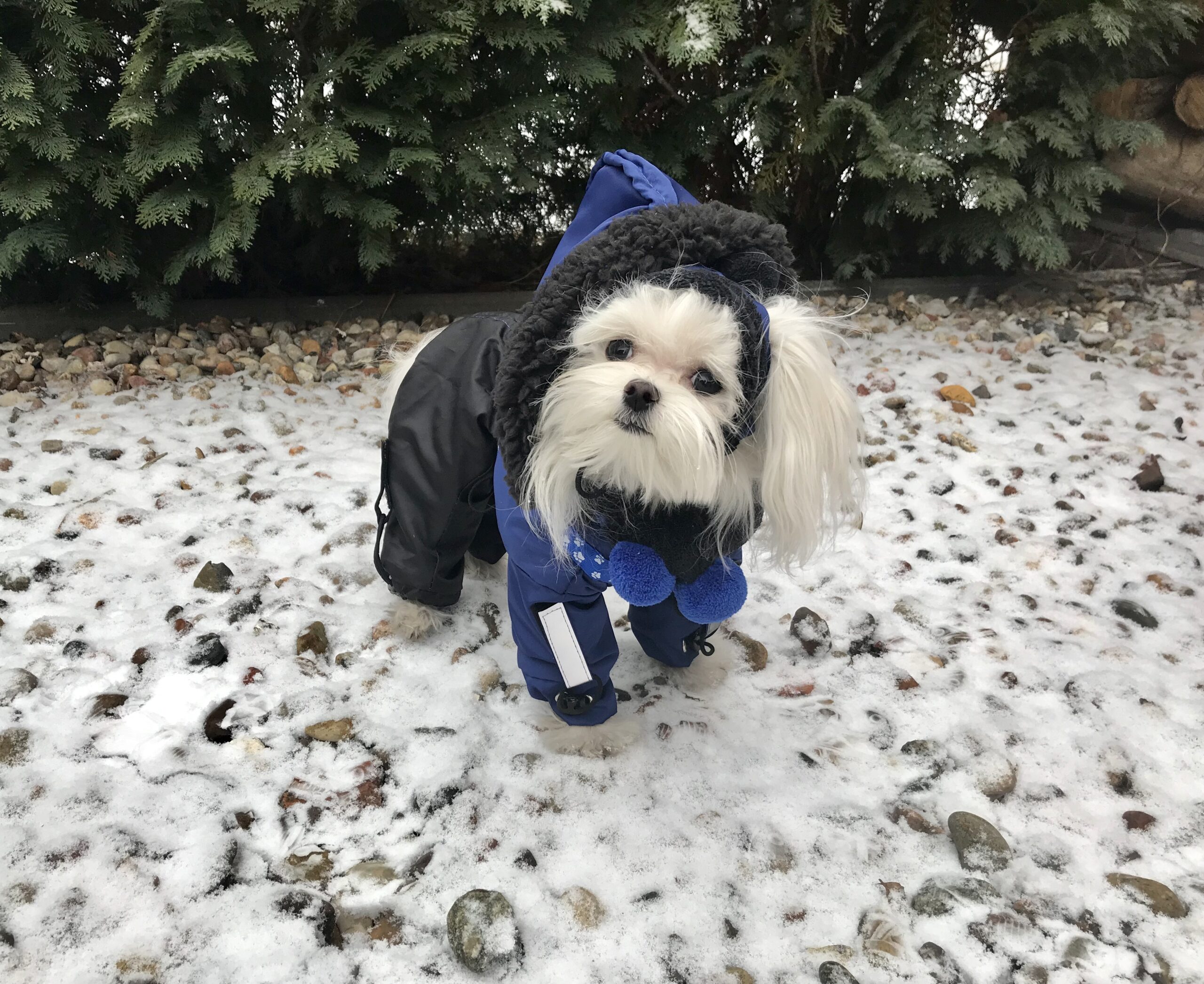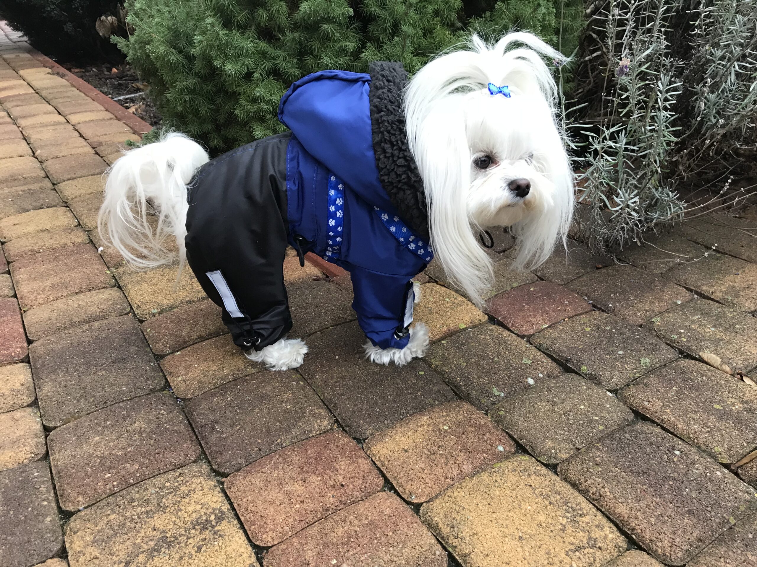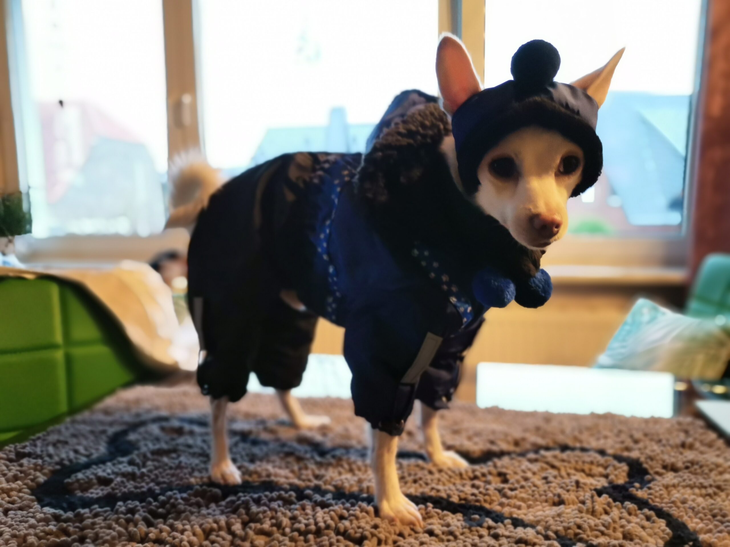Das Mäntelchen ist aus Nylon genäht.Innen sehr warm und gut gefüttert