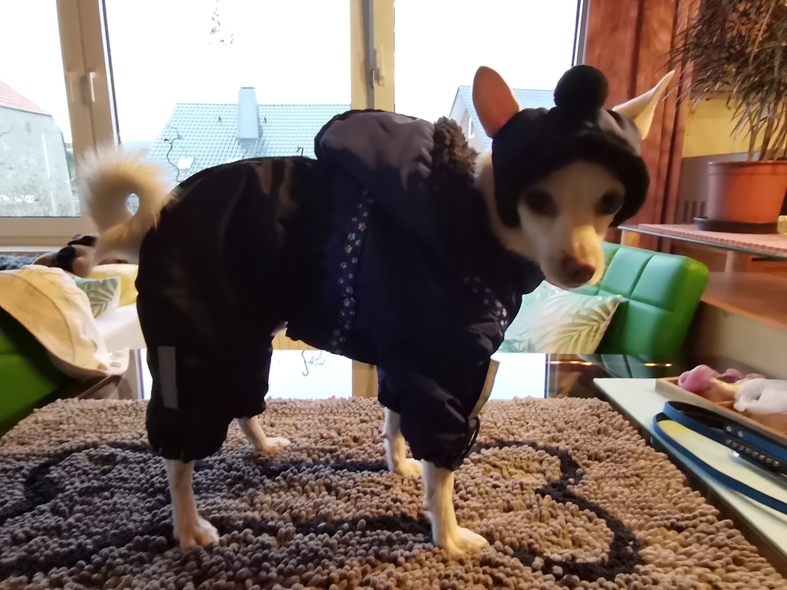 Der Hundemantel ist für Hunde mit etwas längerem Bein (Beinen) geeignet.