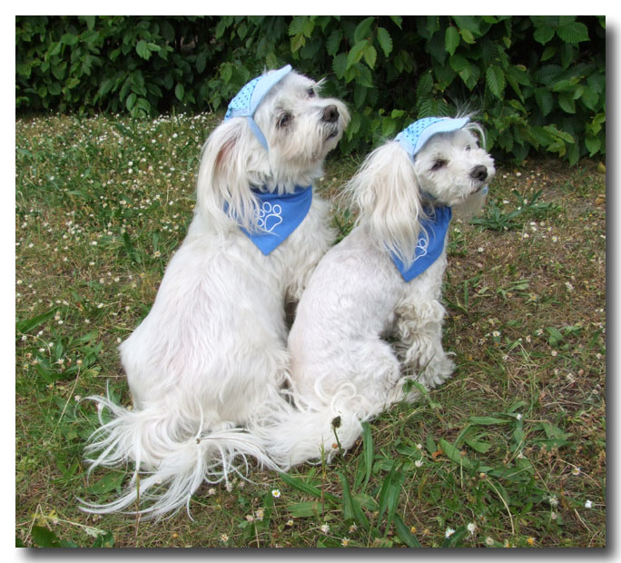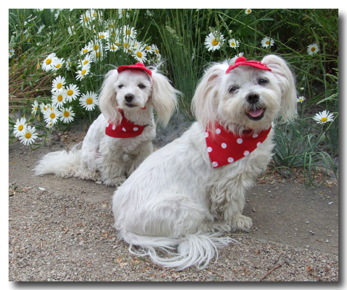 Auf den Fotos sind 3 Malteser zu sehen.Bella (2 kg)und Nico (3 Kg)tragen Gr.XS.Elly(6 kg)trägt Gr.M