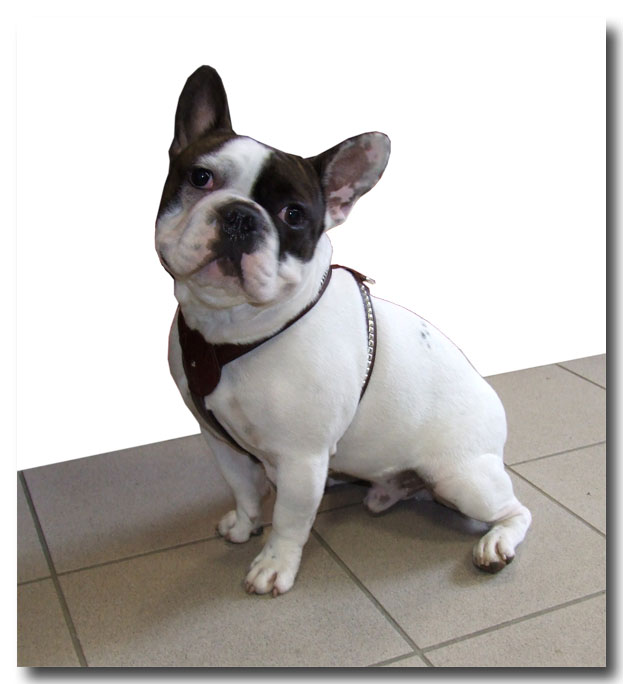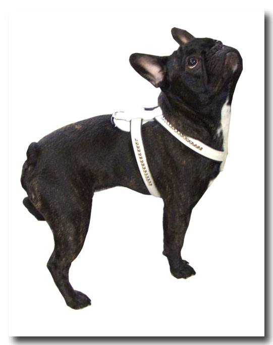 DE LUXE Hunde Geschirr aus umgebuggten Rindleder. Kleine Nieten sorgen für schickes Aussehen und geben eine besondere Note und Eleganz. Ich würde fast sagen -LUXUS. .!!! Die PERFEKTE Verarbeitung aus ausgewählten weichen Leder sorgt dafür, dass sich der Hund total wohl in dem Geschirr fühlen kann. Das Obermaterial des Brustgeschirrs besteht aus Rindleder unterlegt ist es mit extra weichem softleder dadurch ist das Hundegeschirr sehr fellschonend und wunderschön weich. Bei diesem Geschirr wird der Druck , der z.B. beim Ziehen an der Leine entsteht, auf den Brustkorb verlegt .In dem Bereich ist das Geschirr mit gepolsterter Fläche ausgestattet