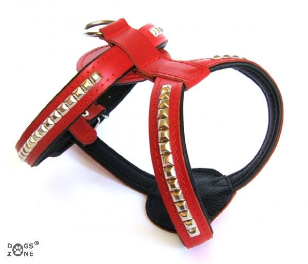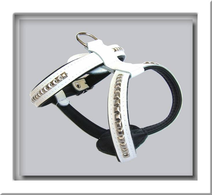 DE LUXE Hunde Geschirr aus umgebuggten Rindleder. Kleine Nieten sorgen für schickes Aussehen und geben eine besondere Note und Eleganz. Ich würde fast sagen -LUXUS. .!!! Die PERFEKTE Verarbeitung aus ausgewählten weichen Leder sorgt dafür, dass sich der Hund total wohl in dem Geschirr fühlen kann. Das Obermaterial des Brustgeschirrs besteht aus Rindleder unterlegt ist es mit extra weichem softleder dadurch ist das Hundegeschirr sehr fellschonend und wunderschön weich. Bei diesem Geschirr wird der Druck , der z.B. beim Ziehen an der Leine entsteht, auf den Brustkorb verlegt .In dem Bereich ist das Geschirr mit gepolsterter Fläche ausgestattet
