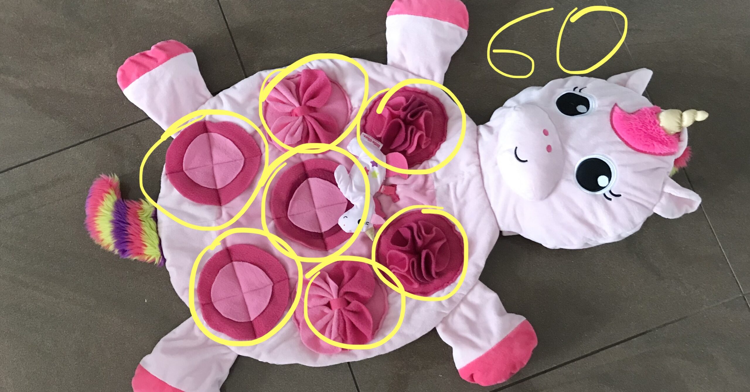 Jede Matte hat unterschiedliche Verstecke Leckerlis, siehe Foto mit den Markierungen. Zusätzlich hat die Matte noch ein abnehmbares Spielzeug zum Kuscheln und lieb haben. Es ist mit Klettverschluss befestigt, welcher bei Bedarf zugemacht bzw. abgedeckt werden kann, damit sich die Hunde die Nasse an dem Klettverschluss nicht aufreiben. Die Spielmatte kann problemlos bei 30 Grad gewaschen werden. Bitte nicht in den Trockner tun.