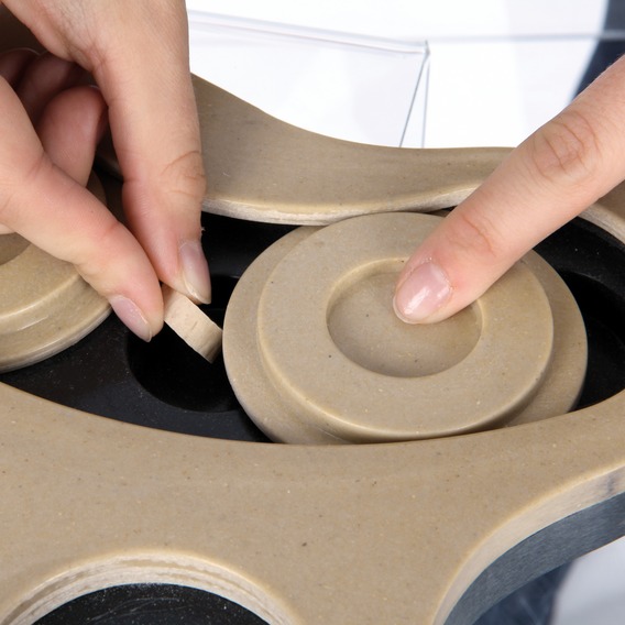 - Seite 2 Chess: der Hund gelangt durch Bewegen der Abdeckungen an die Leckerlies; das Blockieren mit Kegeln erhöht den Schwierigkeitsgrad