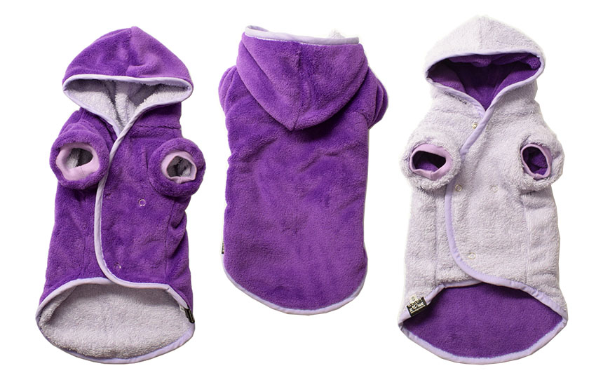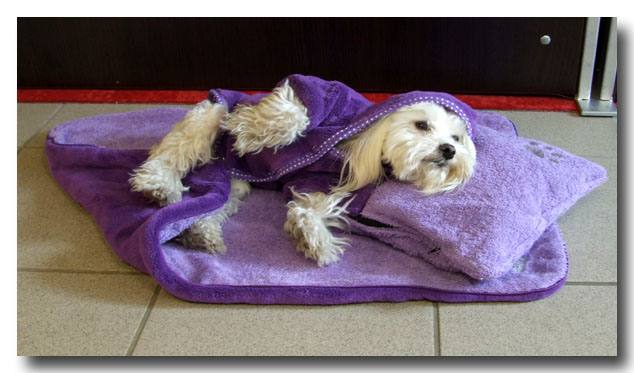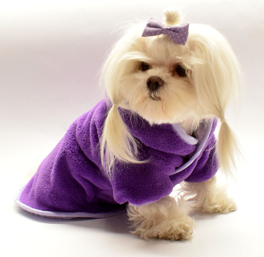 Bitte bedenken Sie: Der Bademantel sollte etwas größer und länger sein als die normale Hundekleidung.