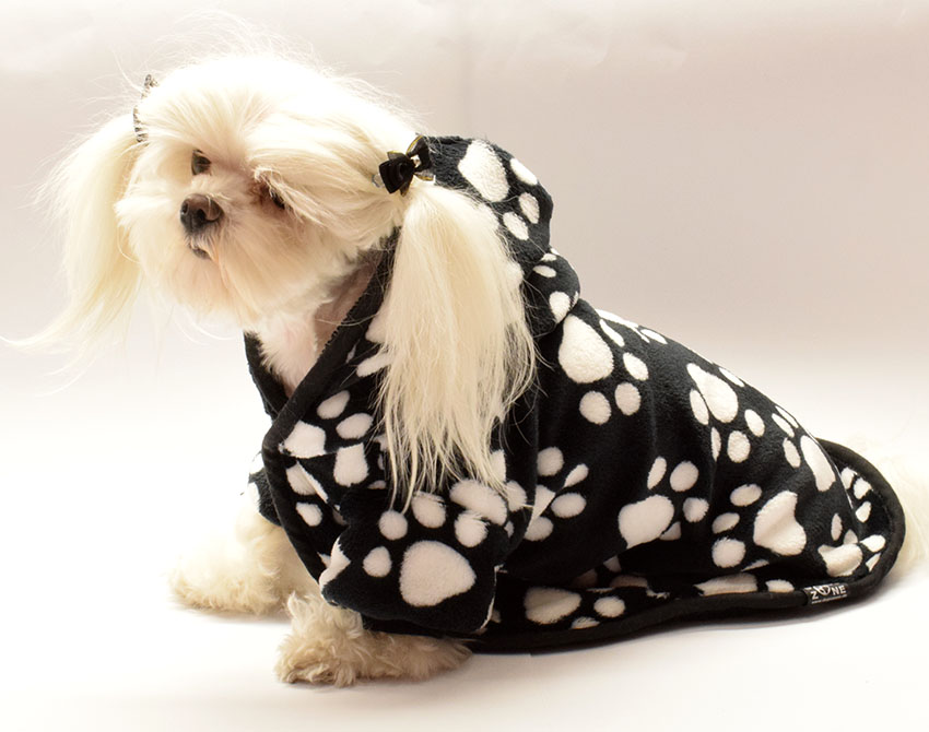 Bitte bedenken Sie: Der Bademantel sollte etwas größer und länger sein als die normale Hundekleidung.