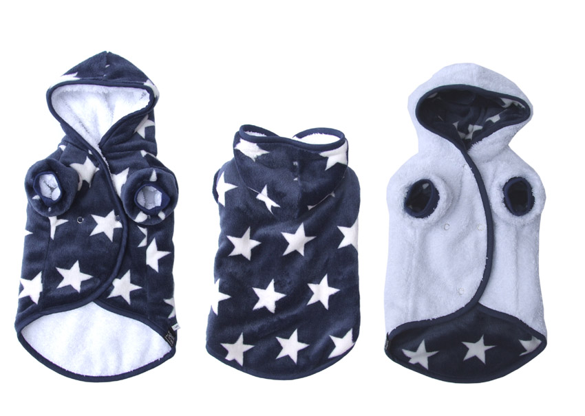 Bitte bedenken Sie: Der Bademantel sollte etwas größer und länger sein als die normale Hundekleidung.