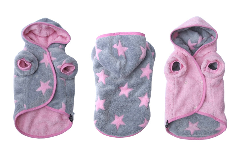 Bitte bedenken Sie: Der Bademantel sollte etwas größer und länger sein als die normale Hundekleidung.