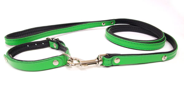 Halsband und Leine aus Leder mit Softleder unterlegt.
