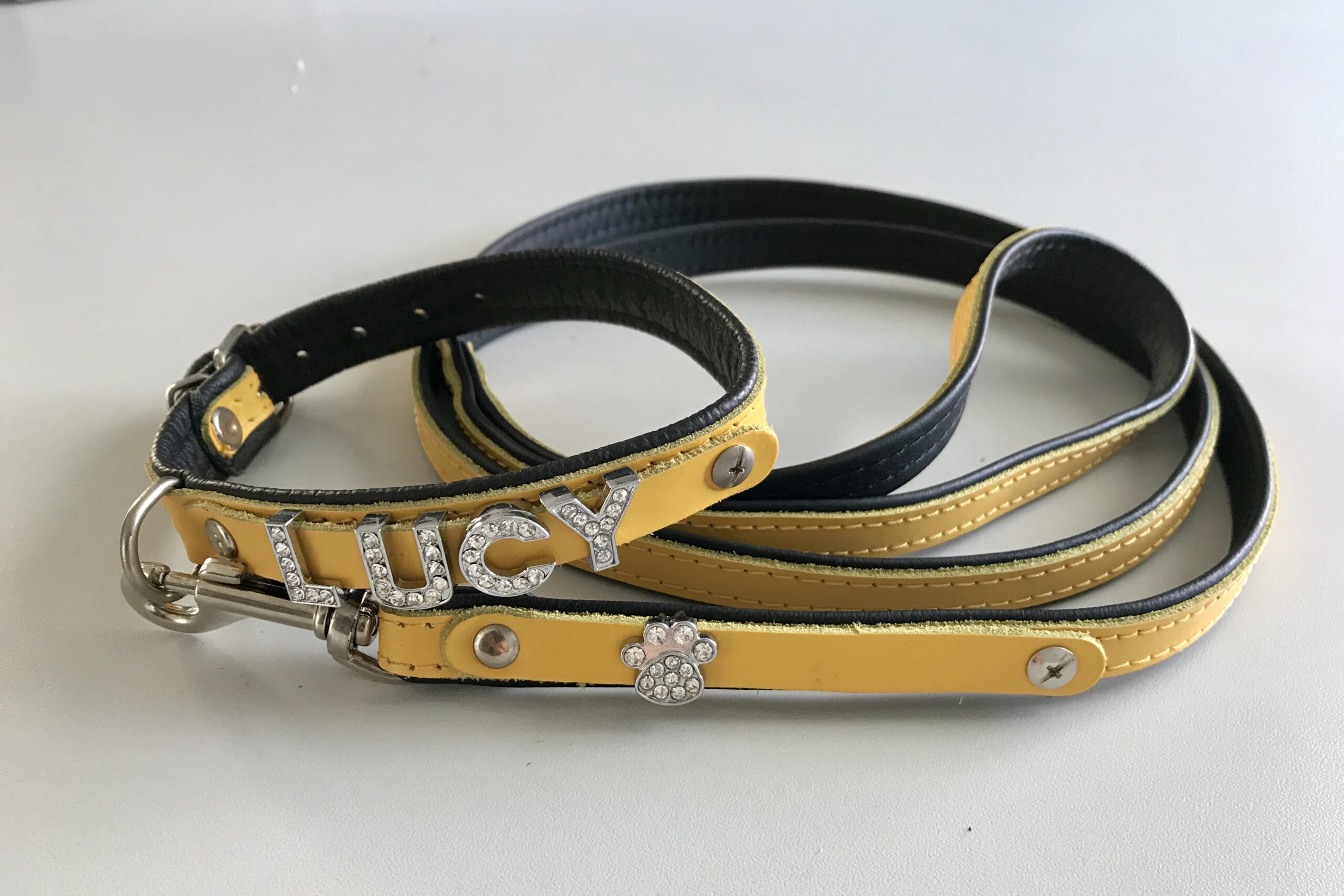 Halsband und Leine aus Leder mit Softleder unterlegt.