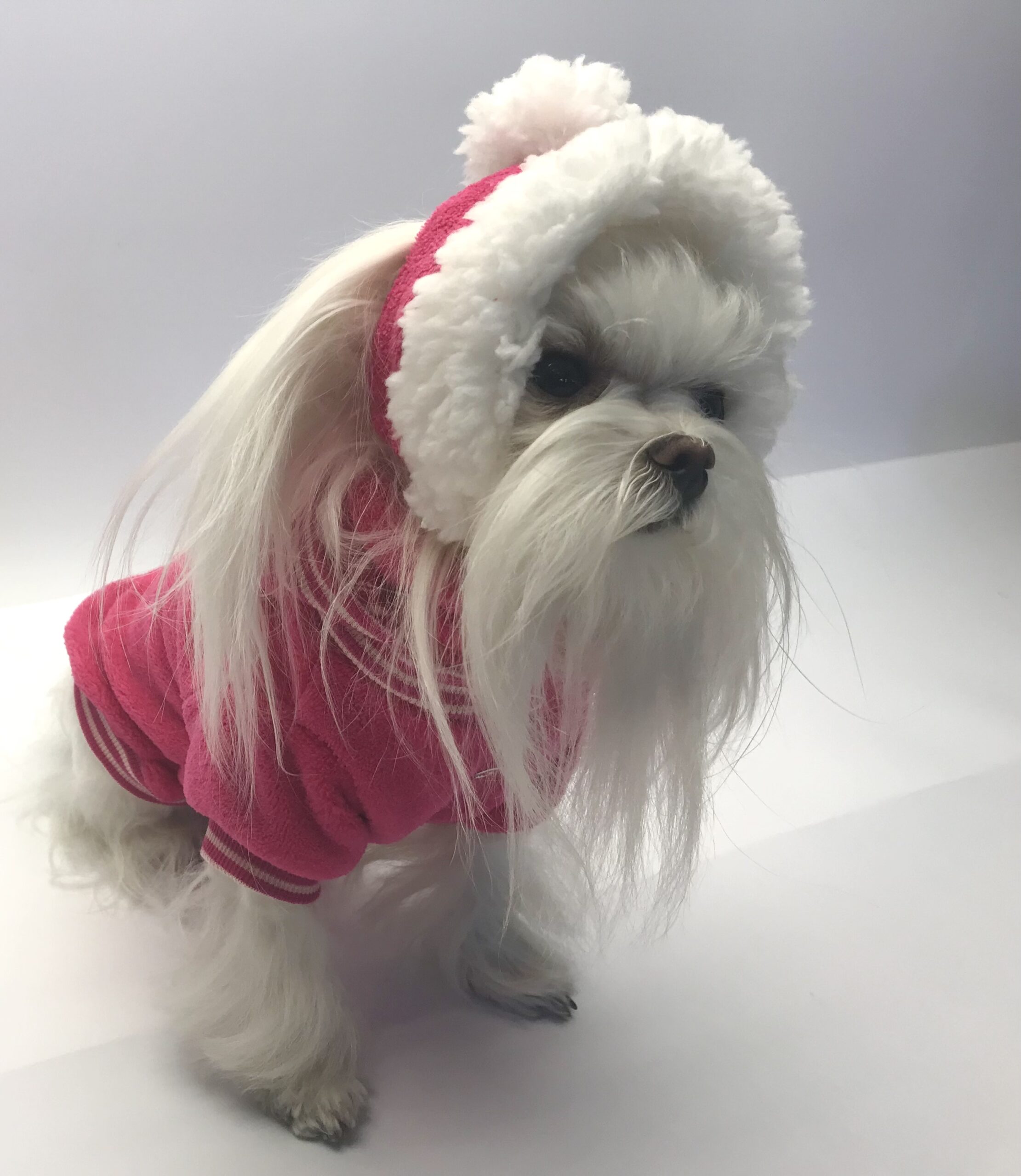 Eine wirklich süße Hundemütze..Super bei Schnee/ Kälte..Zugemacht wird die Mütze unter dem Kienn mit einem stopper