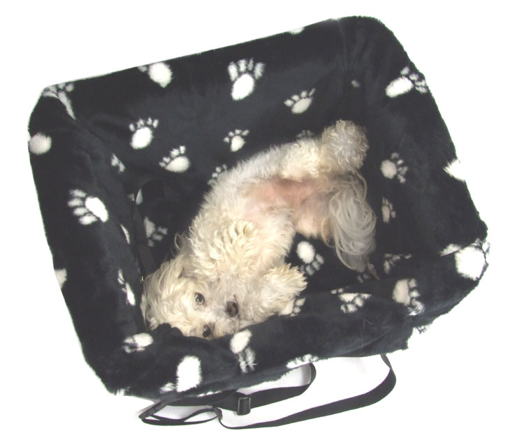 Der hintere Riemen des Körbchens wird um die Rückenlehne gelegt. Die Länge des Gurtes ist verstellbar. Bitte stramm einstellen. Der Autokorb sollte zusätzlich mit einem Sicherheitsgurt festgeschnallt werden. An der Rückseite des Körbchens gibt es  senkrecht angebrachte Bänder dafür. Um Ihren Hund zu sichern, können Sie den mitgelieferten Sicherheitsgurt mit dem Karabinerhaken benutzen. Dieser kann mit dem selben Autogurt ,wie der Korb,  durchgesteckt werden. Die andere Seite mit dem Karabiner bitte an einem Sicherheits- Hundegeschirr (NIEMALS AM HALSBAND) befestigen. Im Inneren befinden sich zwei längenverstellbare Kurzleinen. Diese sind dafür gedacht, den Hund oder Hunde im Körbchen zu fixieren. Sie sollten aber nicht alleine als Sicherung des Hundes während der Fahrt dienen!
