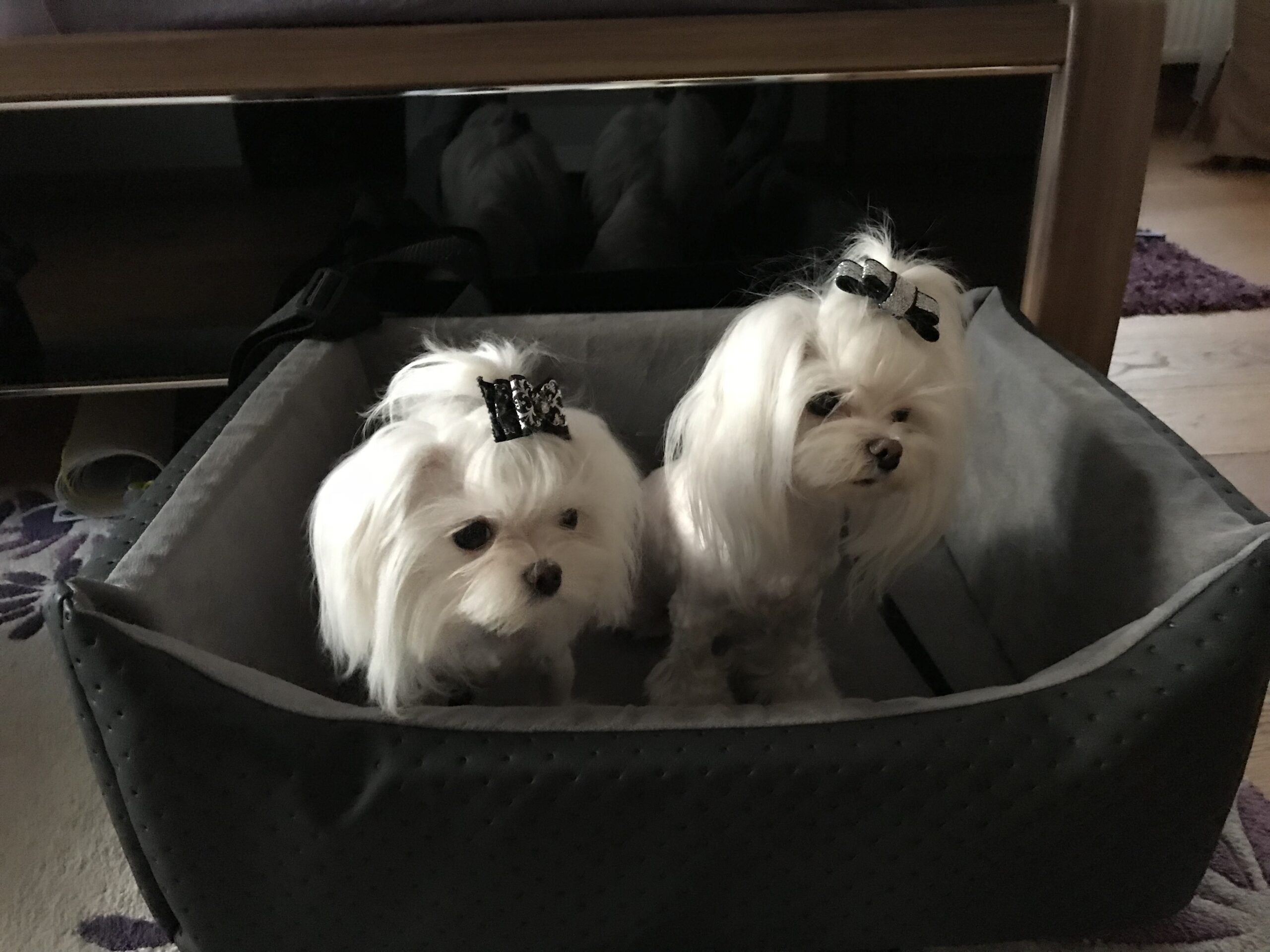 Der hintere Riemen des Körbchens wird um die Rückenlehne gelegt. Die Länge des Gurtes ist verstellbar. Bitte stramm einstellen. Der Autokorb sollte zusätzlich mit einem Sicherheitsgurt festgeschnallt werden. An der Rückseite des Körbchens gibt es senkrecht angebrachte Bänder dafür. Um Ihren Hund zu sichern, sollten Sie den mitgelieferten Sicherheitsgurt mit dem Karabinerhaken benutzen. Dieser kann mit dem selben Autogurt ,wie der Korb, durchgesteckt werden. Die andere Seite mit dem Karabiner bitte an einem Sicherheits- Hundegeschirr (NIEMALS AM HALSBAND) befestigen. Im Inneren befinden sich zwei längenverstellbare Kurzleinen. Diese sind dafür gedacht, den Hund oder Hunde im Körbchen zu fixieren. Sie sollten aber nicht alleine als Sicherung des Hundes während der Fahrt dienen!Bitte folgendes beachten: