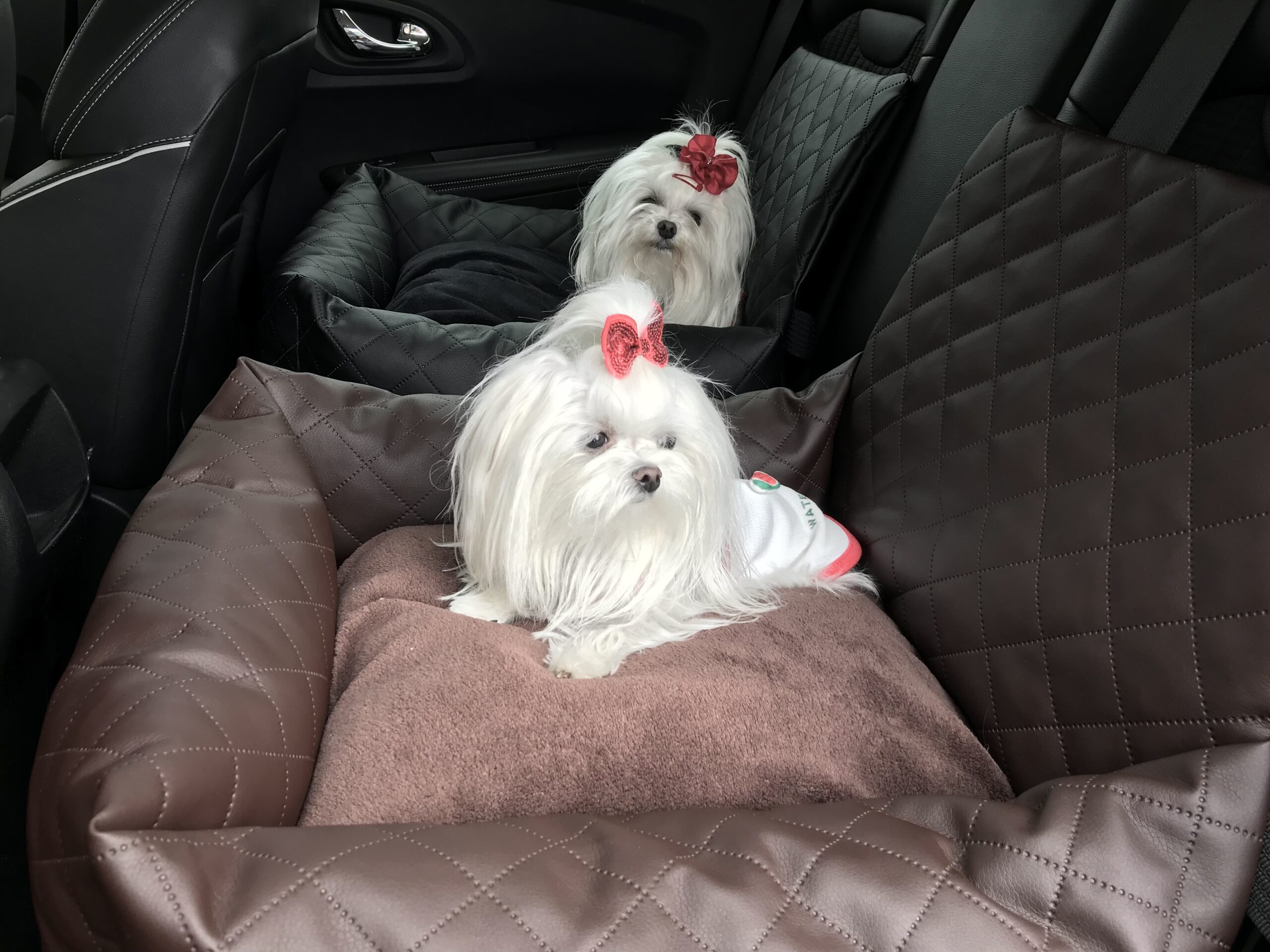 Beide können in einem Korb reisen.Es ist genug Platz für 2 kleine Hunde
