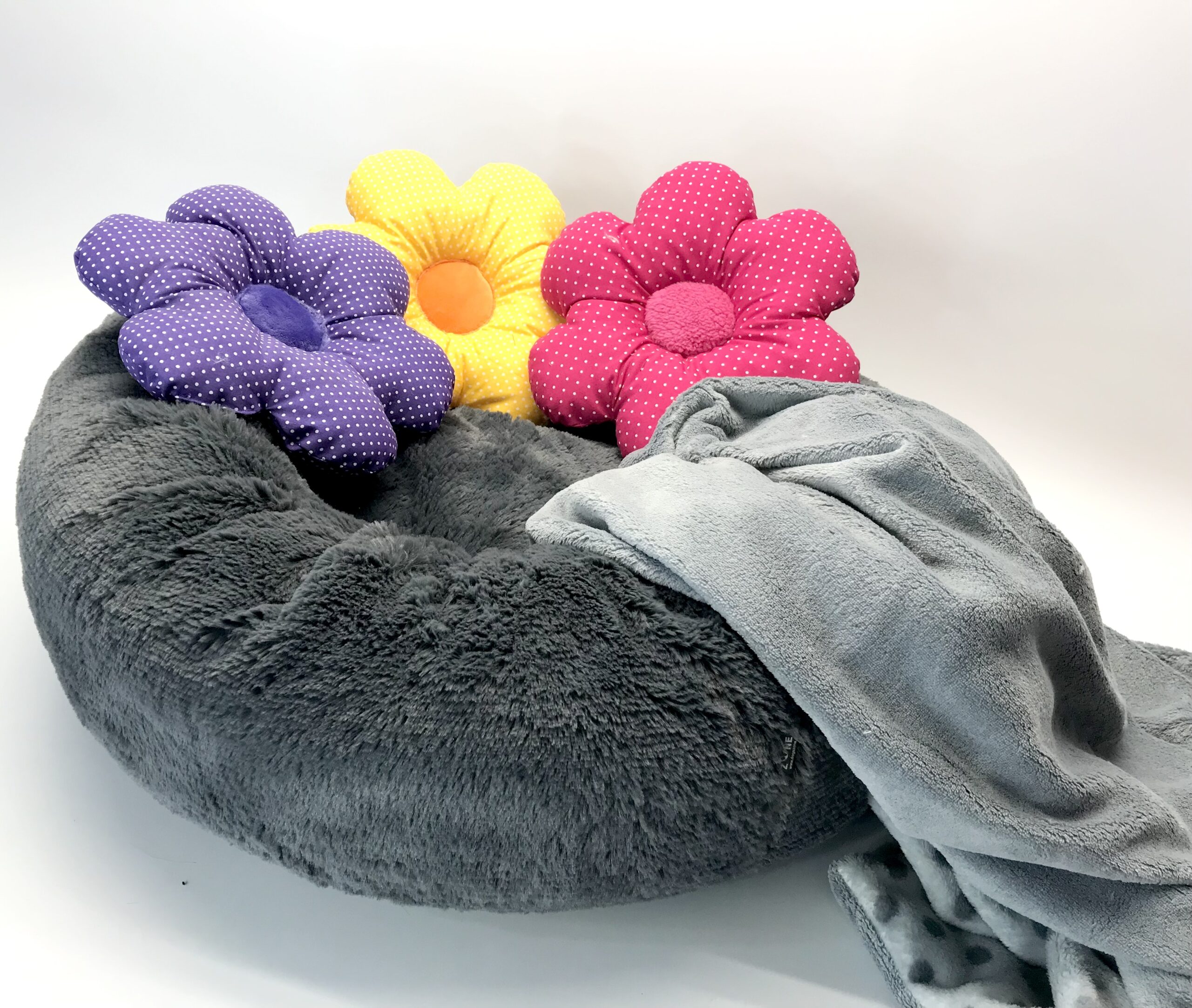 Ein kleines Kissen im Form von Knochen oder Blume schmückt das Bett zusätzlich.