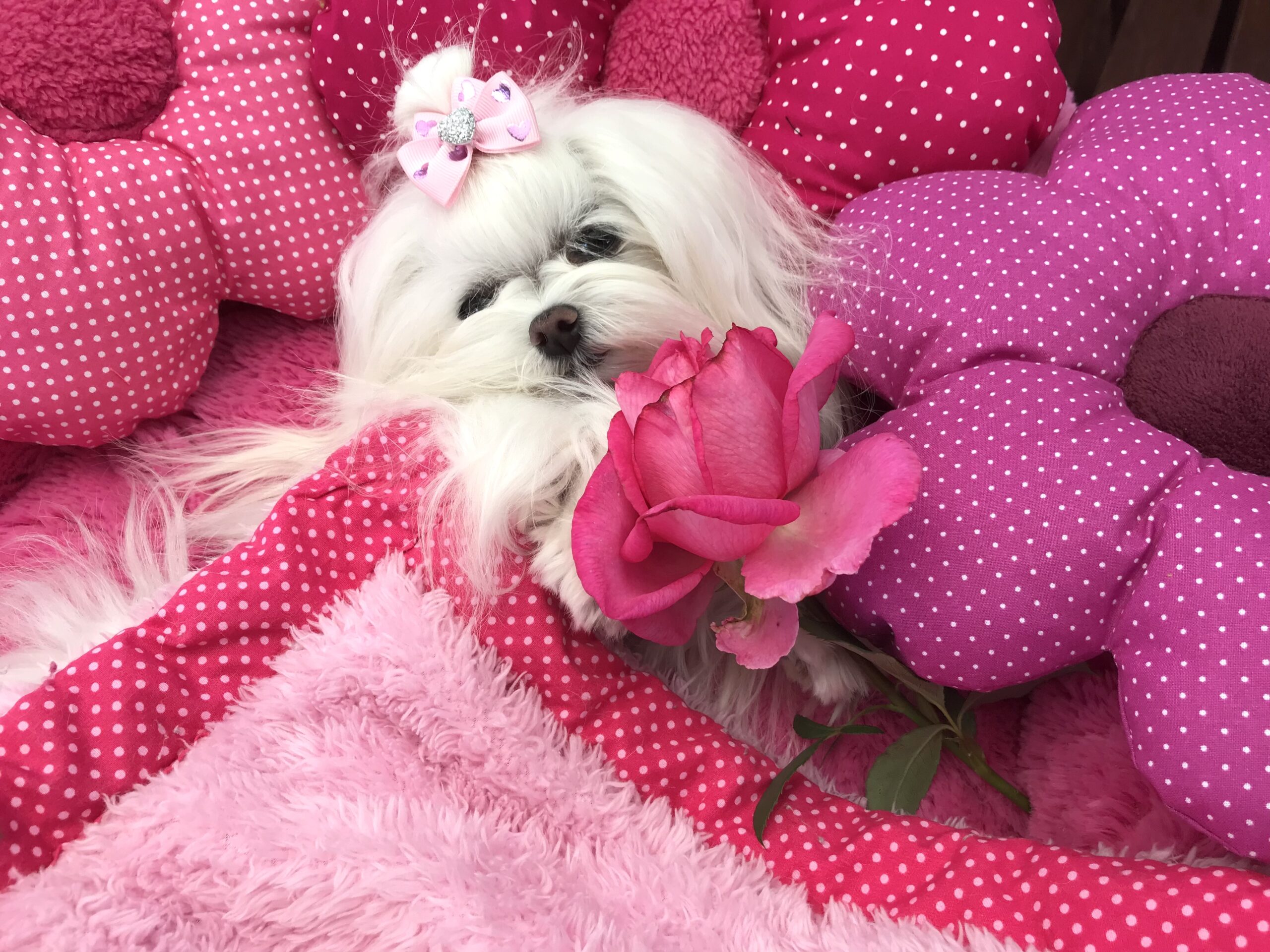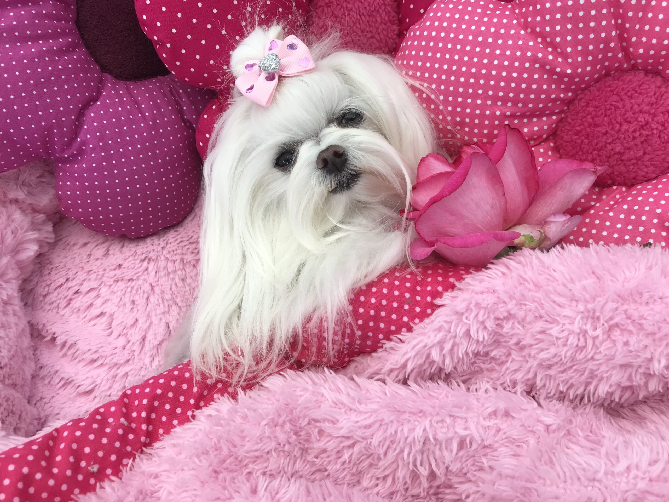 LILLY und BELLA auf den Fotos sind 2 kleine Malteser. Lilly wiegt unter 2 kg, Bella ca. 2,4 kg. Beide haben genug Platz drin. Die beiden liegen im Bett Gr.1