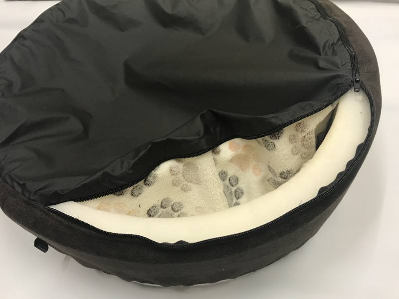 Das Hundebett besticht in seinem einzigartigem Design. Der Innenstoff besteht aus kuscheligem Plüschstoff, die Außenseite aus hochwertigen Möbelstoff. Der Bezug ist waschbar und das Innenleben ist herausnehmbar. Das hochwertige Füllmaterial schützt ihren Liebling vor schädlicher Bodenkälte. Die Wände sind ca.4 cm dick und aus Schaumstoff gemacht.Das innenkissen ist herausnehmbar und hat einen Bezug,den man waschen kann.Sie können selbstverständlich auch bei Bedarf das ganze Kissen waschen.Das Bett ist sehr leicht aber trotzdem stabil.