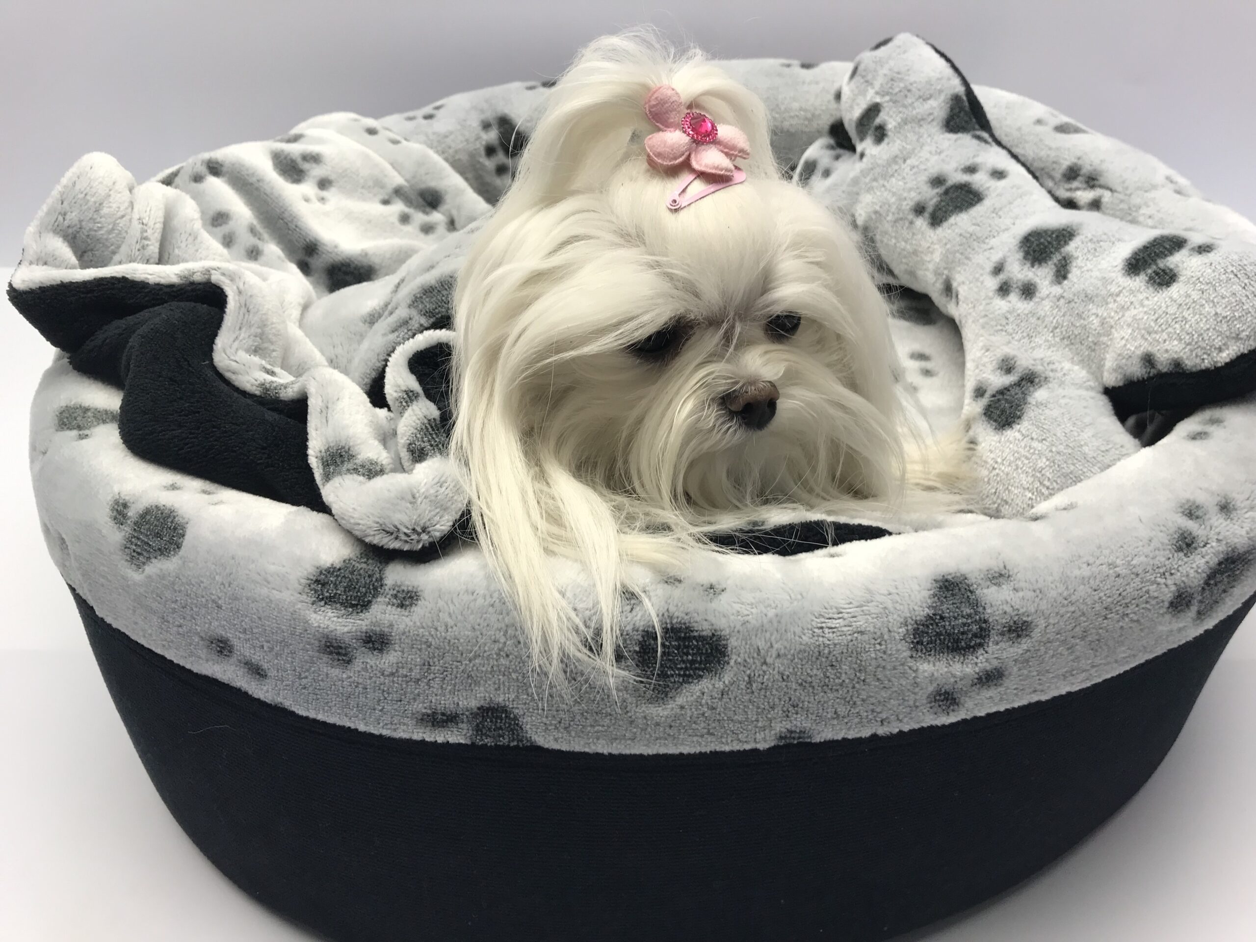Farbe:Schwarz Grau mit Pfötchen Muster