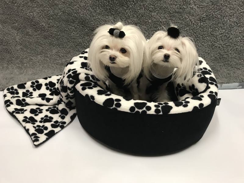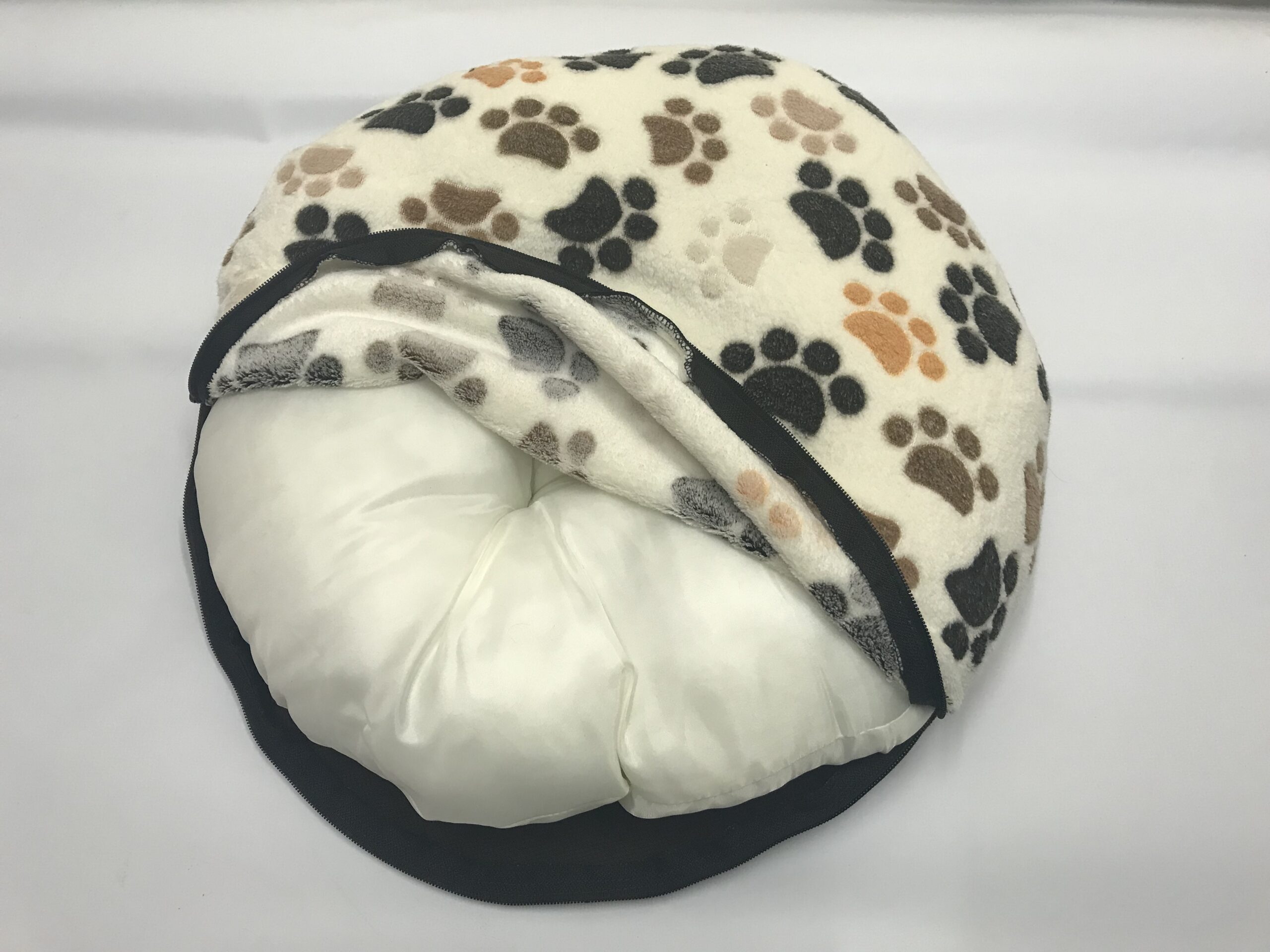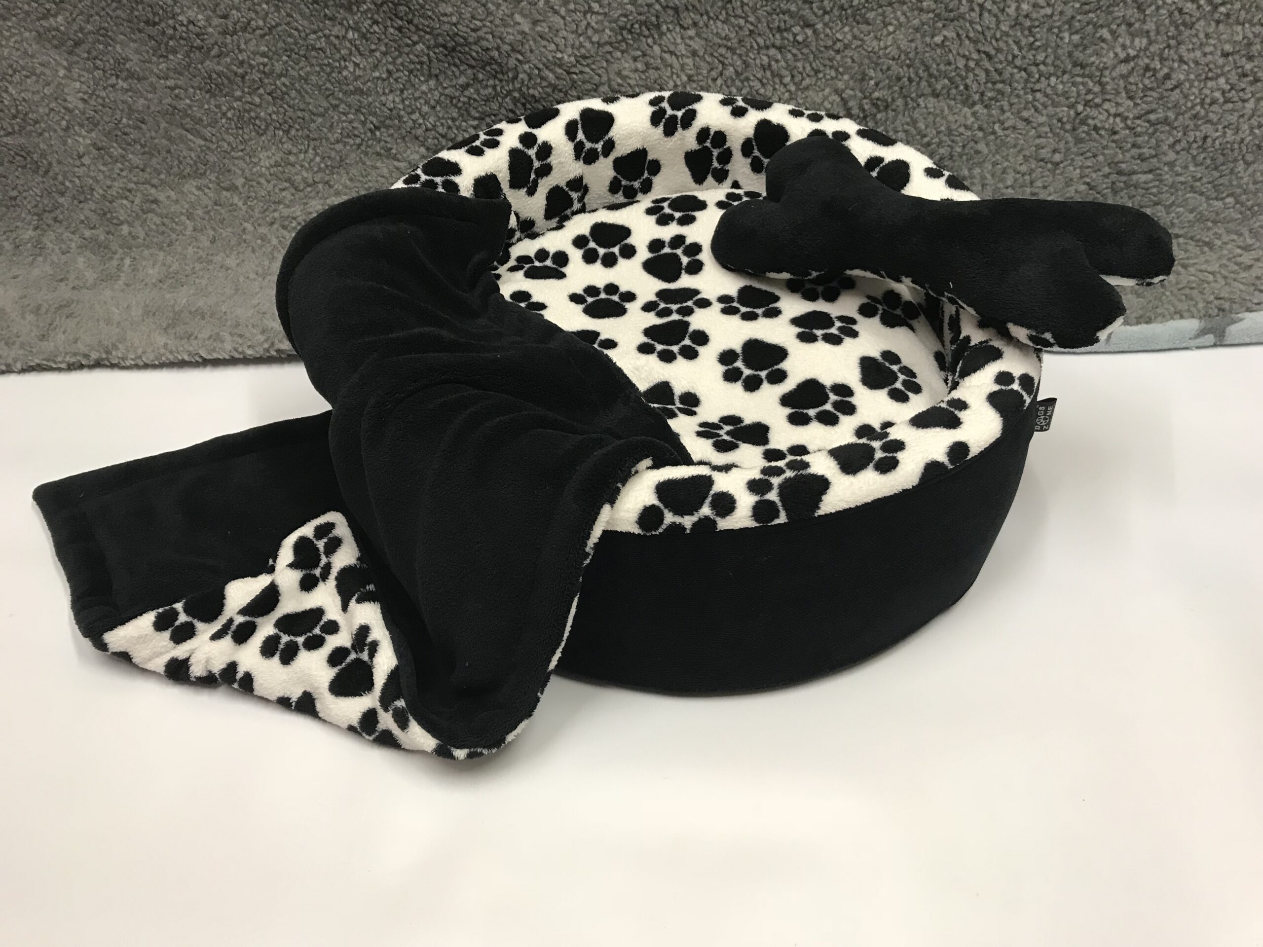 Sie bekommen das hübsche Bett inklusive passendem gratis Kissen in Form eines Knochen und eine passende doppelseitige Hundedecke zum kuscheln.