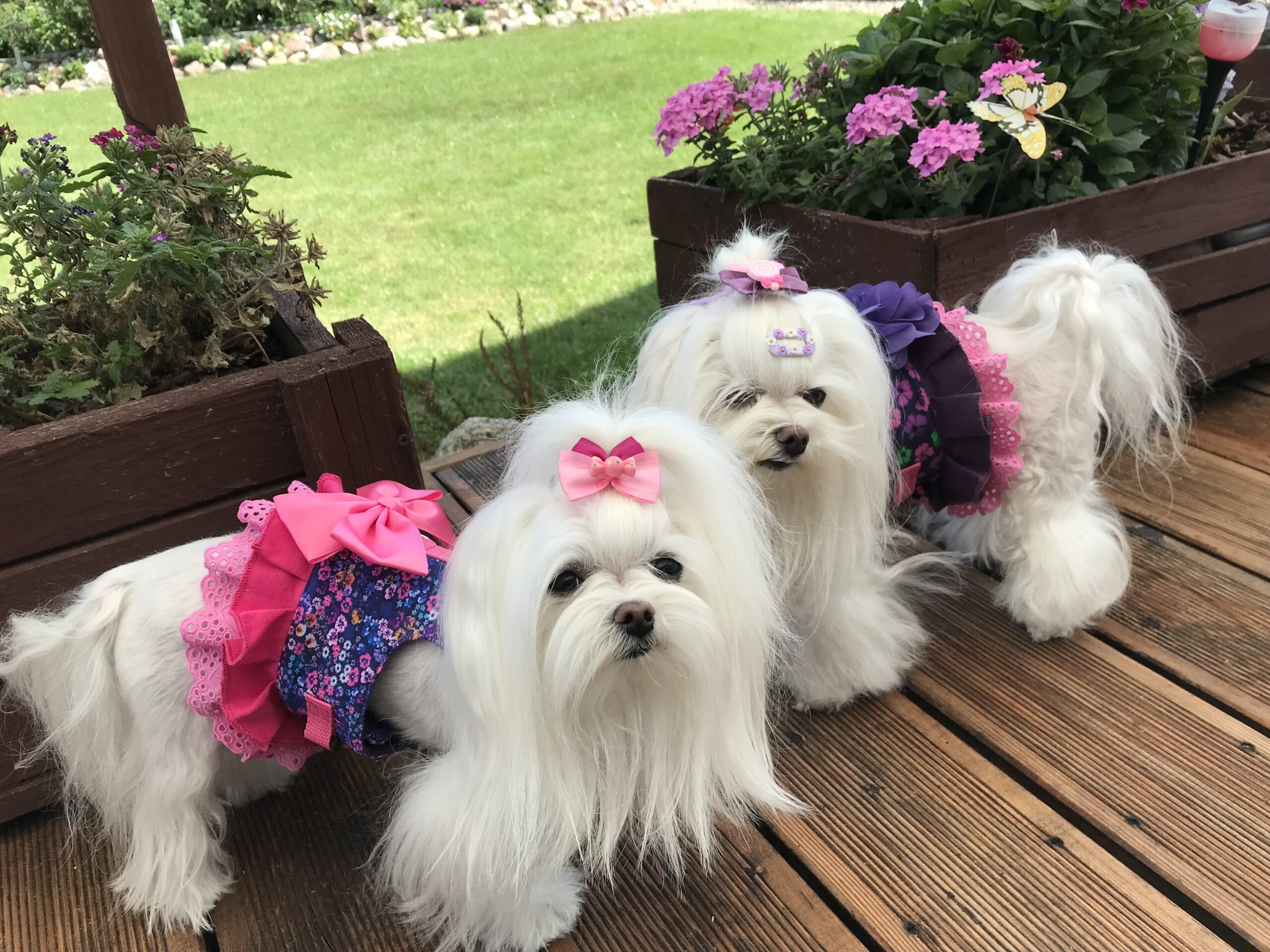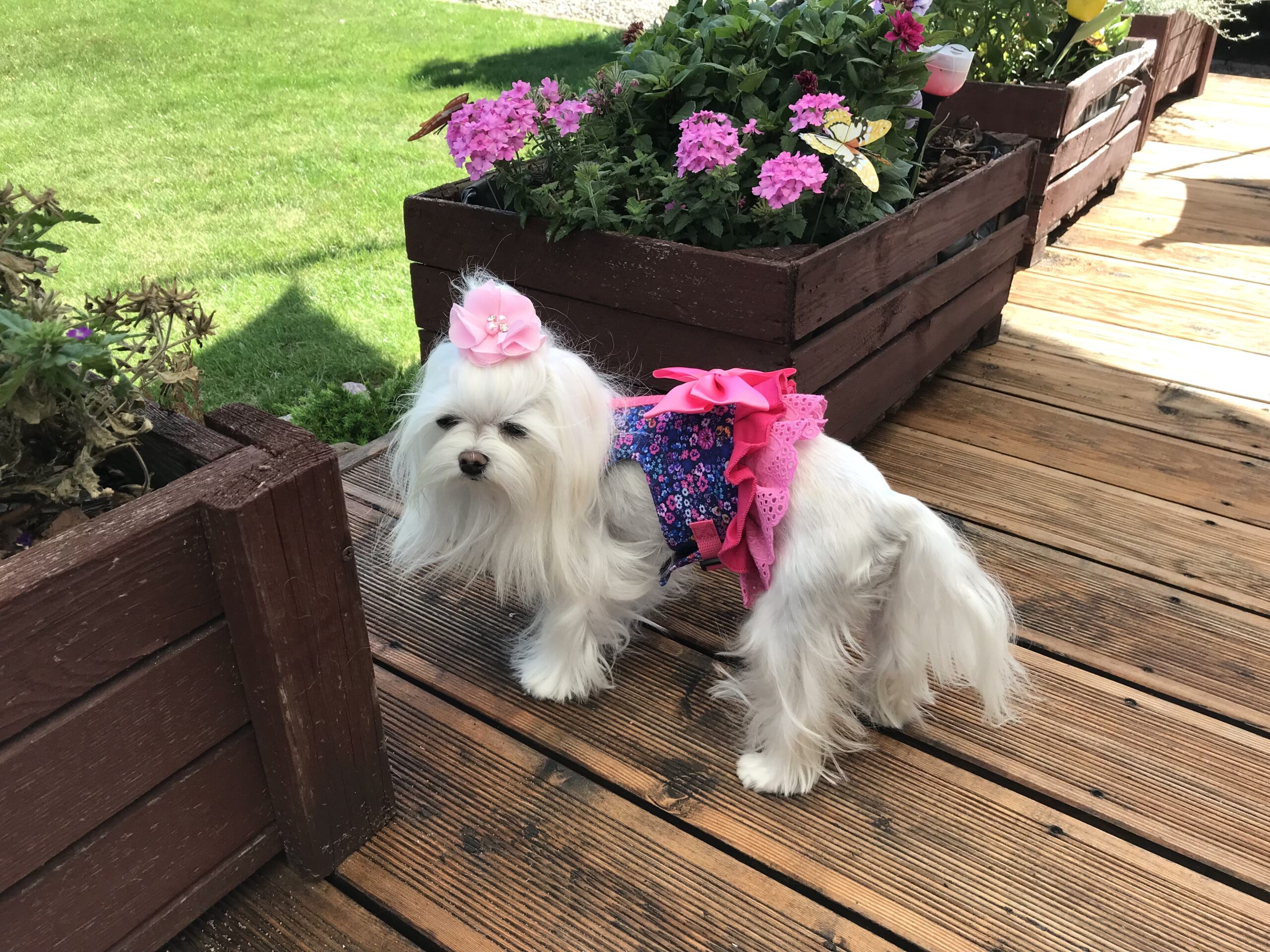 Extra Schmuck Schleifen oder Blumen können Sie zusätzlich im Shop kaufen.Diese sind auf Spangen oder Klipp befestigt und können problemlos gewechselt werden.Kleine Blumen gibts auch als Spange für Hundezopf oder als Schmuck auf eine Sicherheitsnadel