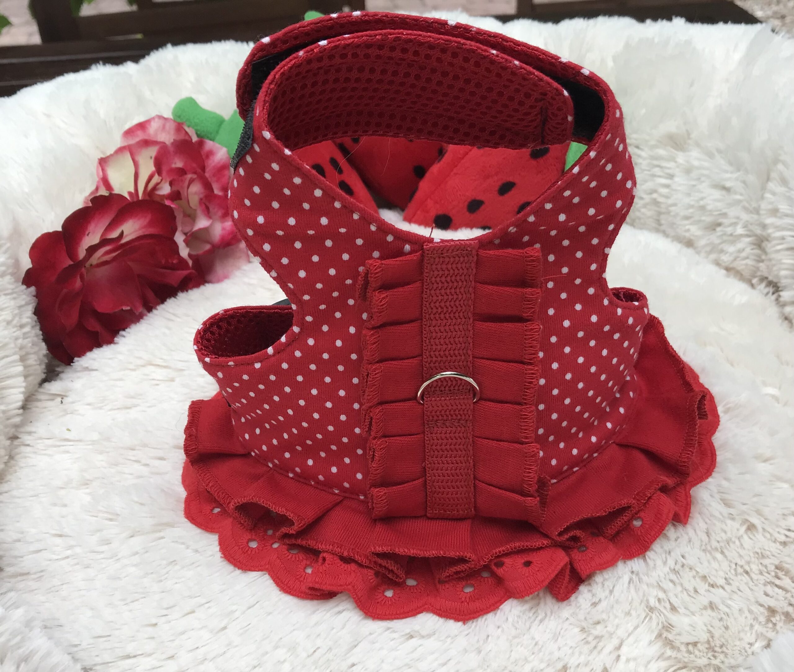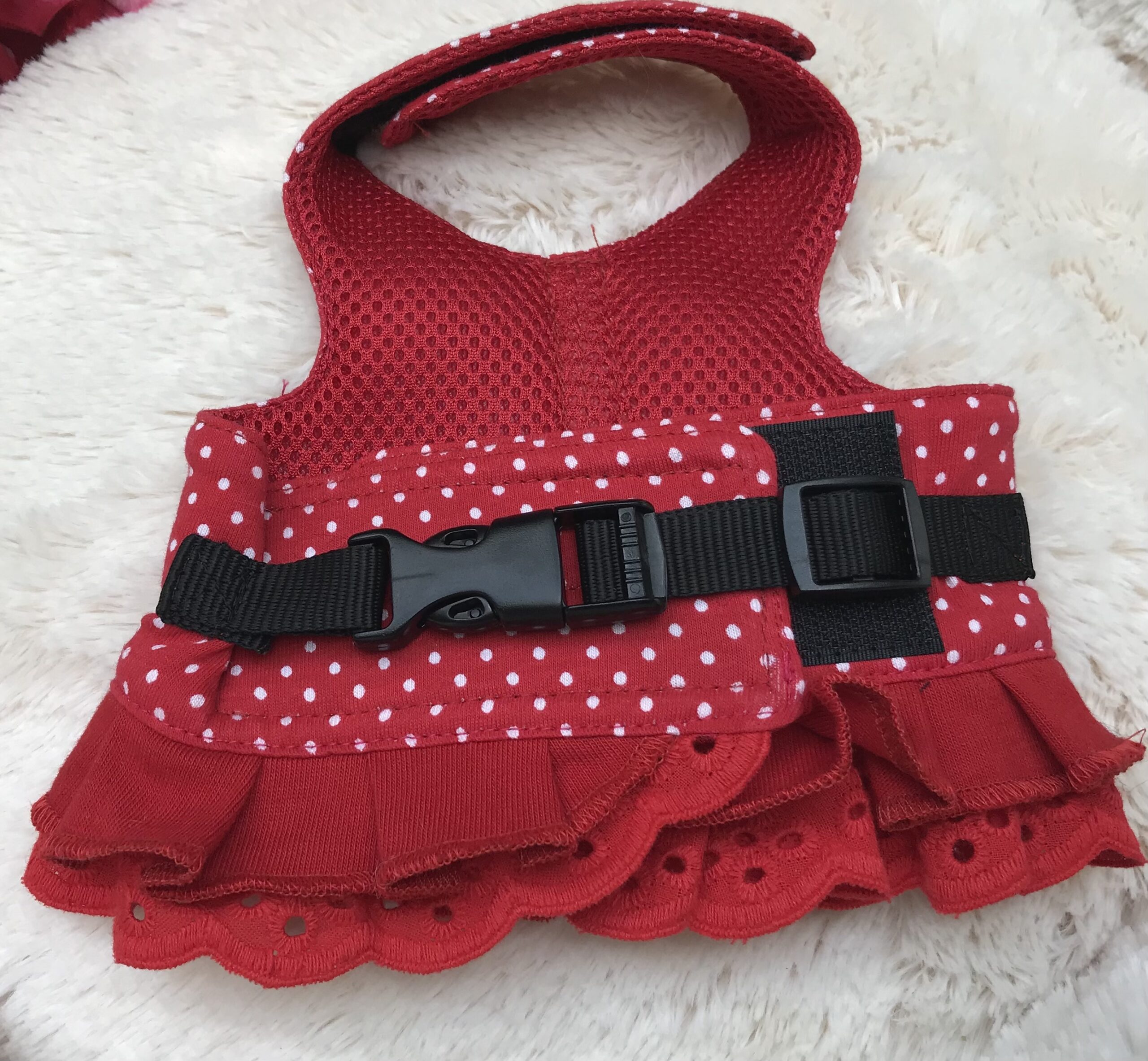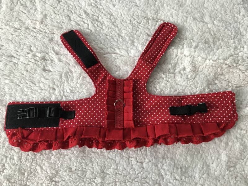 Super süüüüüßes Soft-Geschirr für Ihre Kleine Princessin.Zugemacht wird das Geschirr mit Klettverschluss am Hals und am Bauch.Zusätzlich mit Band und Klickverschluss am Bauch.Schöne details machen das Geschirr zum SOMMER HIGHLIGHT.Verzehrt mit Rüschen.Englische Spitze macht das Teil zum echten Hingucker.Nicht nur stylisch,modern aber auch bequem,robust.Kann ganz normal in der Waschmaschine gewaschen werden.