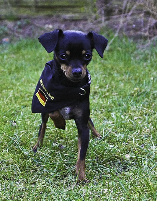 Das Halstuch ist abnehmbar(zum waschen).Eine aufwendige Stickerei mit eine Fahne und Aufschrift