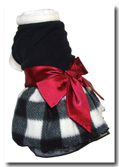 Winterkleid für die kleine Prinzessin.Zugemacht wird das Kleidchen unter dem Bauch mit klettverschluss.Am Rücken befiden sich 1 große rote schleife.Das Kleid hat vorne beinchen.