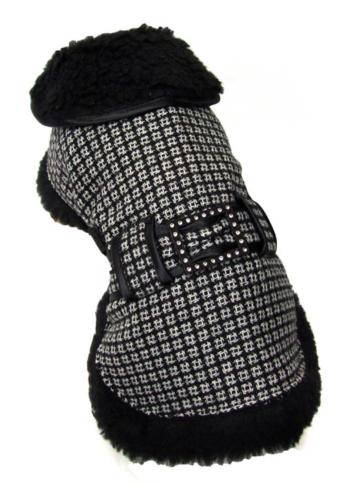 Sehr schöner und weicher Hundemantel mit Pelz ähnlichem Stoff am Kragen und am Saum abgenäht.An der Schnalle glitzende Akzente…