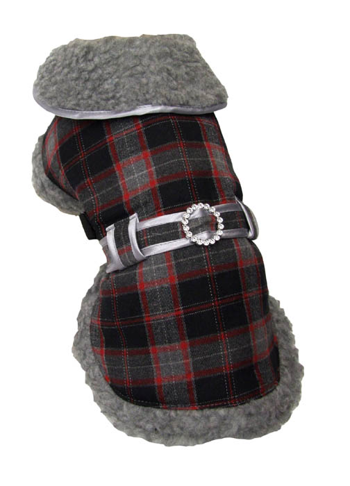 Sehr schöner und weicher Hundemantel mit Pelz ähnlichem Stoff am Kragen und am Saum abgenäht.An der Schnalle glitzende Akzente…