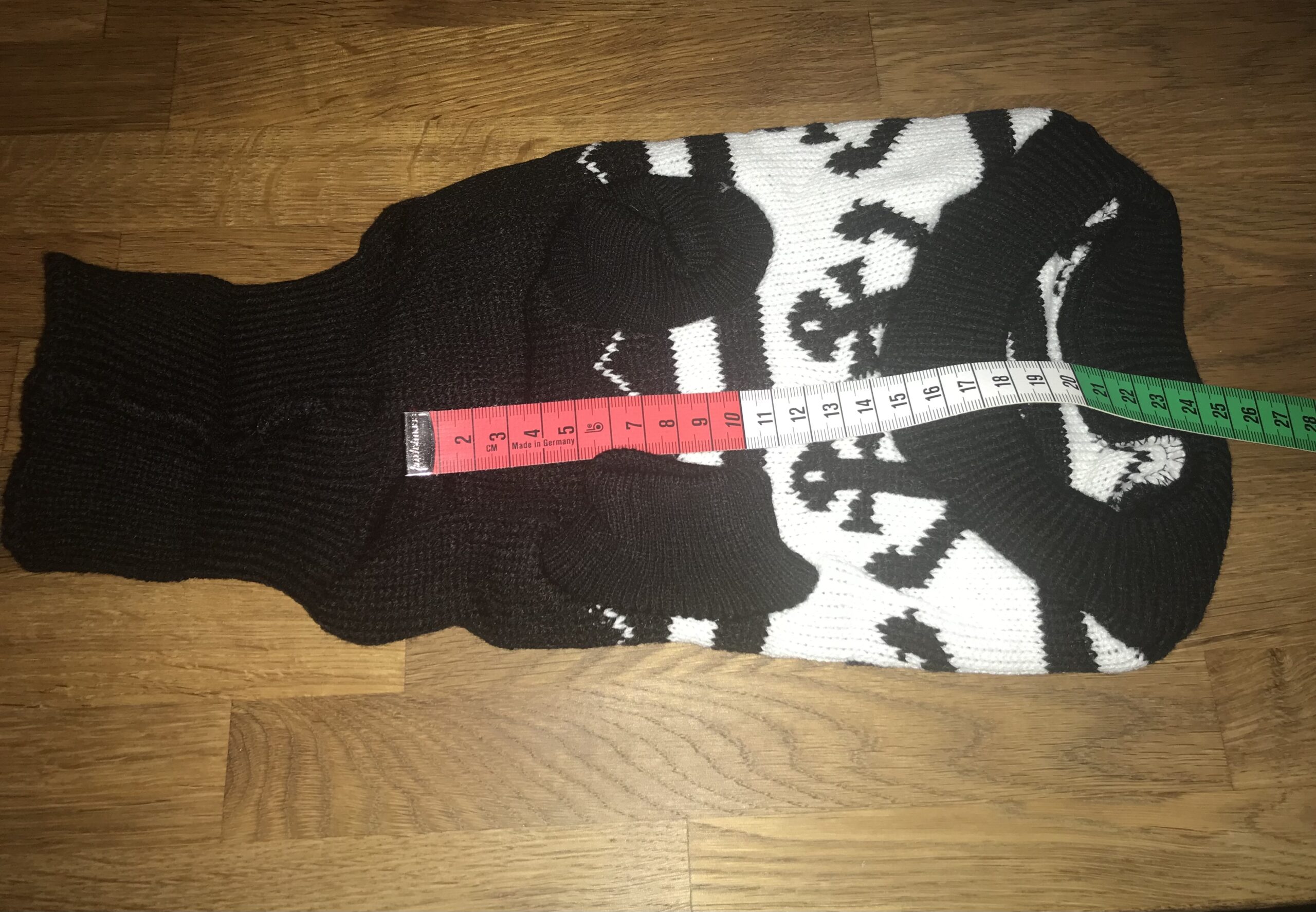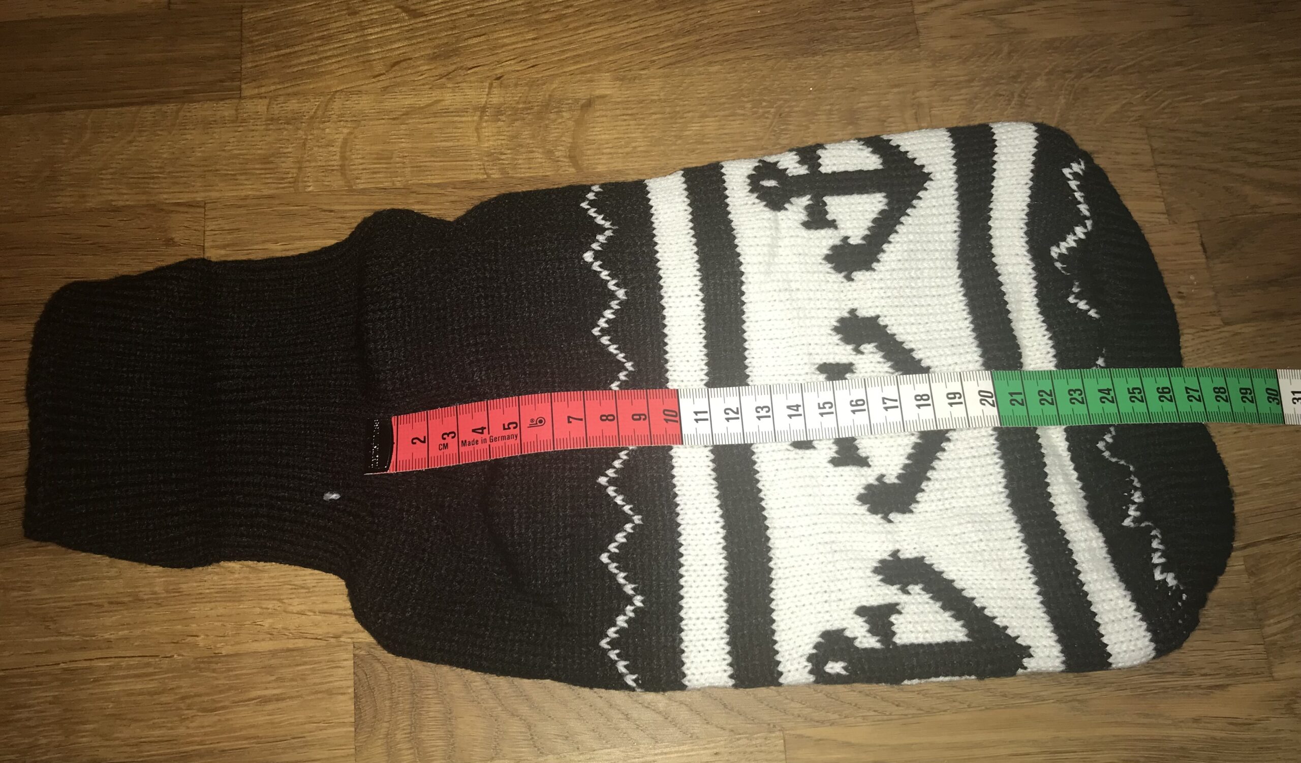 Brustumfang ca 32-34 cm ,Rückenlänge des Hundes ca.22-24 cm,Gewicht des Hundes ca .2-2,5 kg Pulli- Länge ohne Kragen mit abschluss Bündchen ca.23 cm Länge am Bauch ca.17 cm (gemessen ohne Kragen)