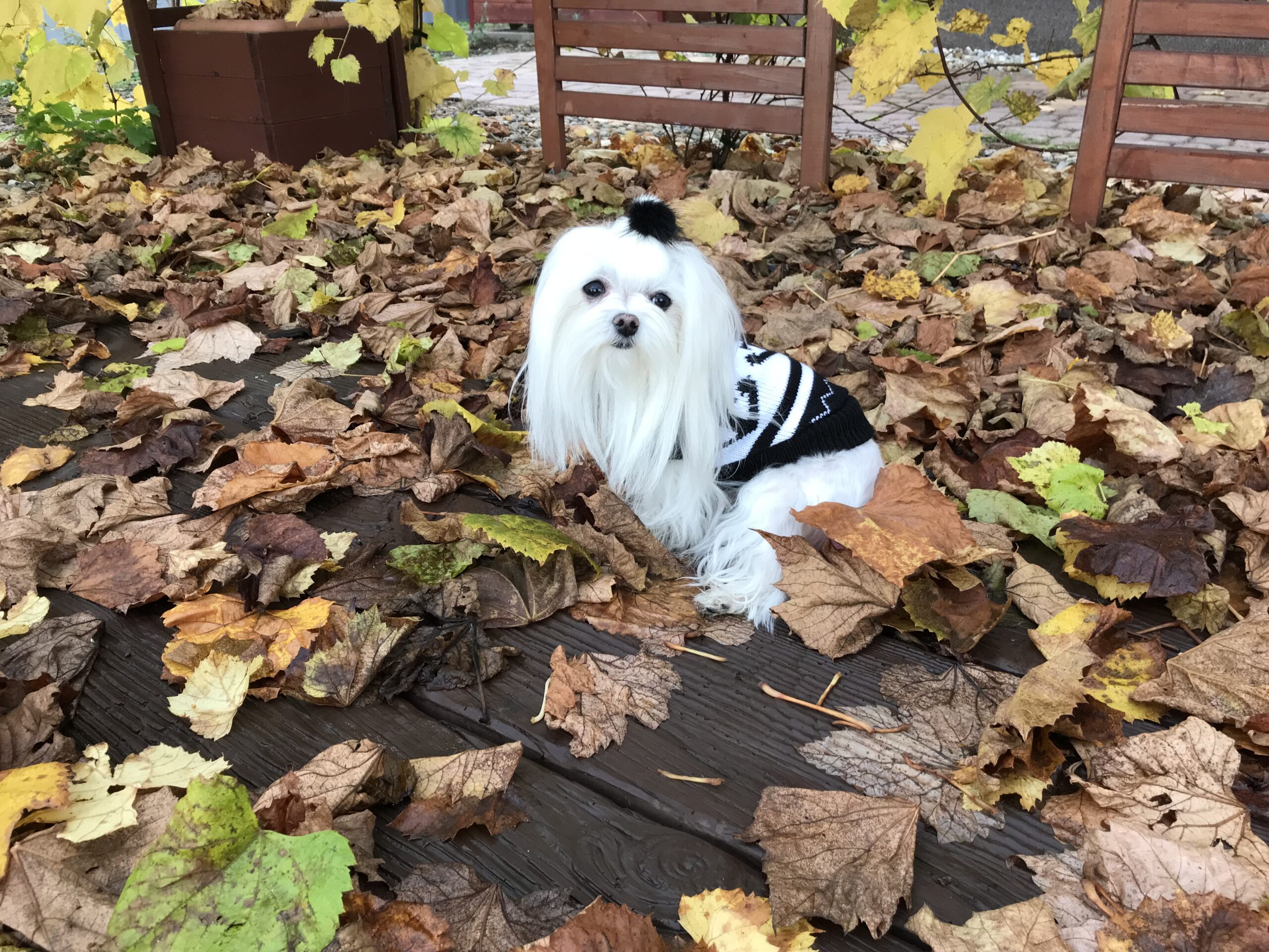 Meine Bella auch Malteser.Gewicht ca 2,5 kg,Rückenlänge 24 cm,Brustumfang 34 cm.Bella braucht Gr.L
