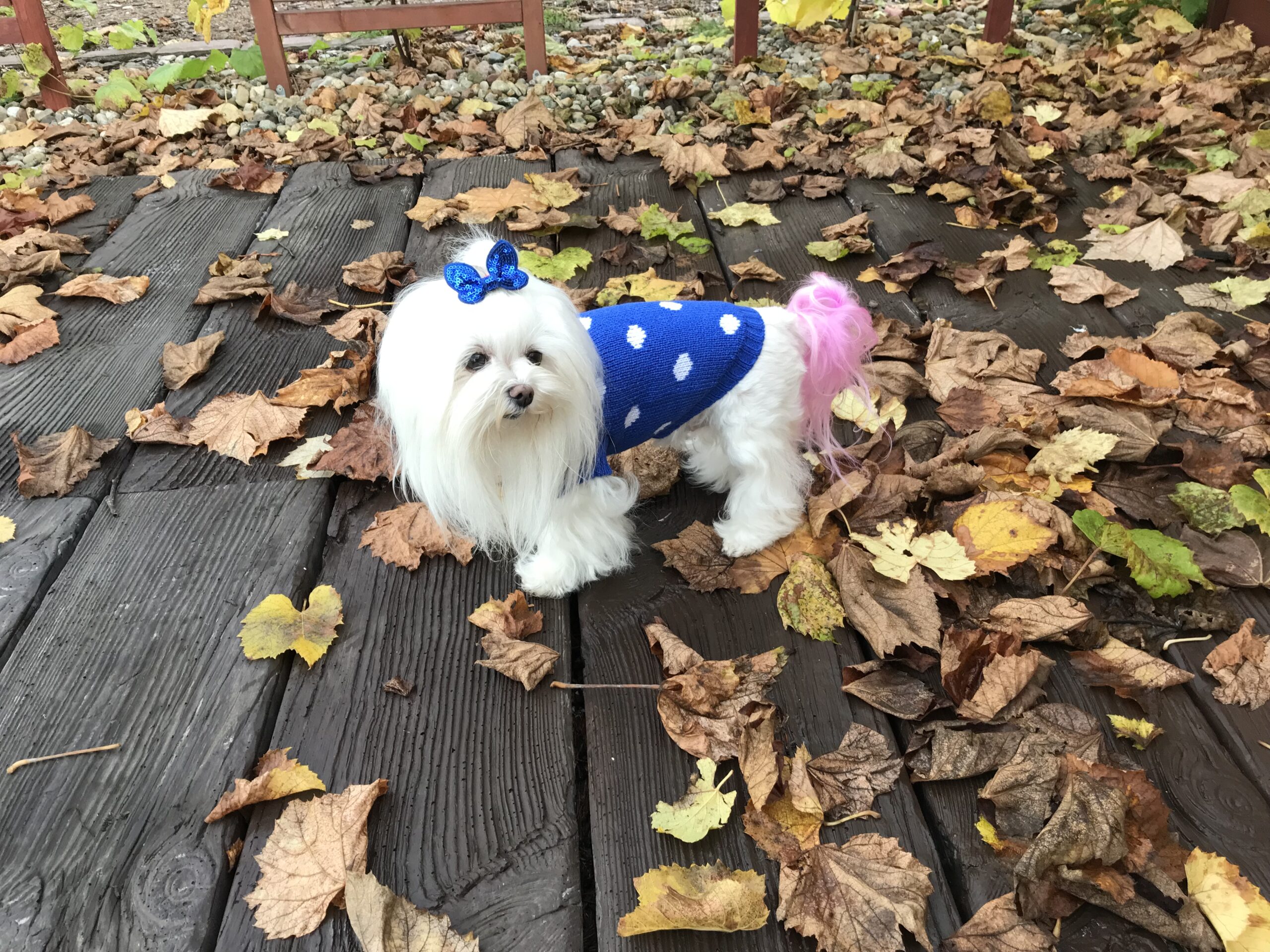 Meine Bella auch Malteser.Gewicht ca 2,5 kg,Rückenlänge 24 cm,Brustumfang 34 cm.Bella braucht Gr.L