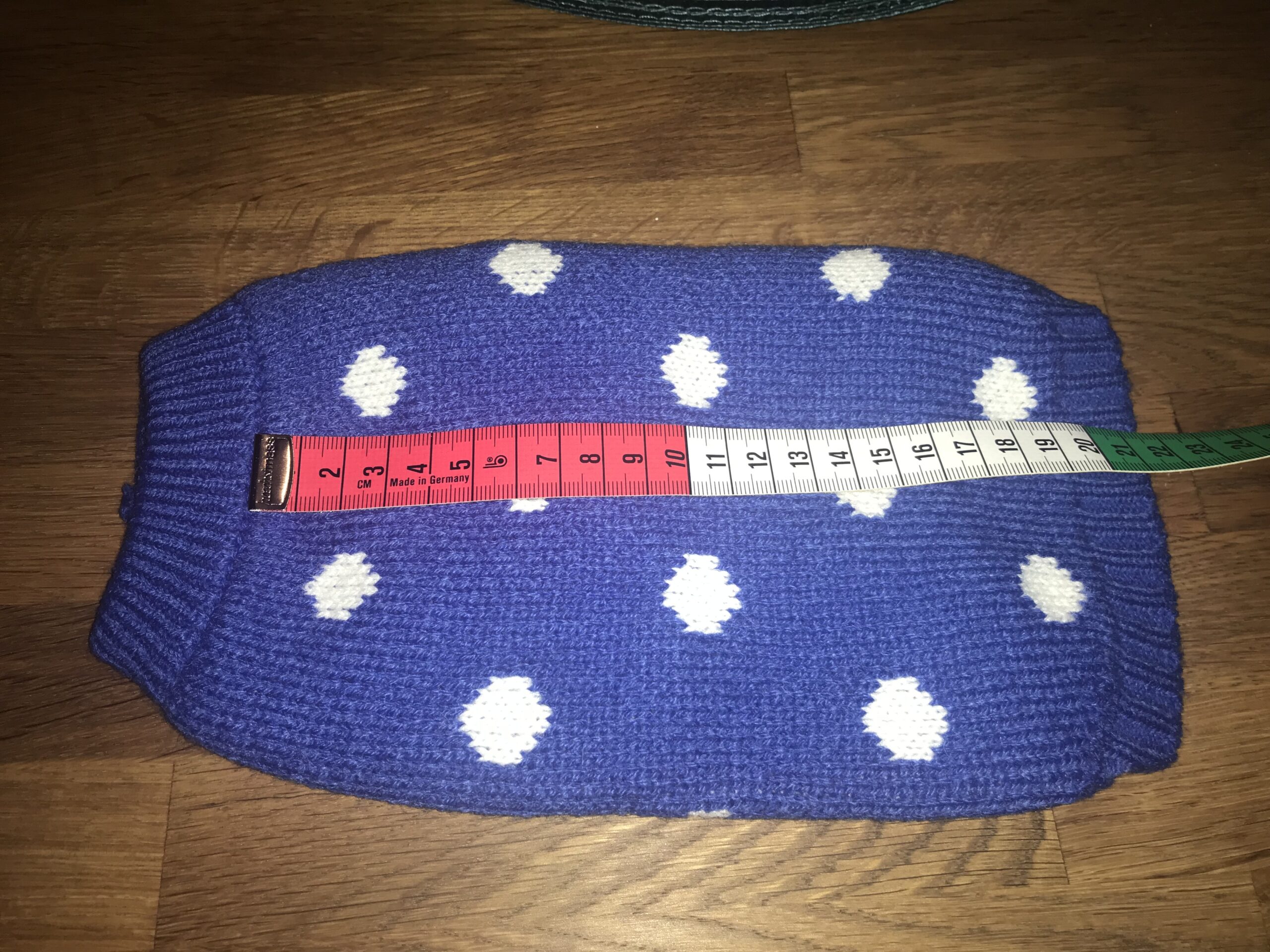 Brustumfang ca 40-48 rückenlänge des Hundes ca.32-36 cm Gewicht des Hundes ca .5-7Kg, Pulli- Länge ohne Kragen mit abschluss Bündchen ca.34 cm,Länge am Bauch ca.25 cm (gemessen ohne Kragen)