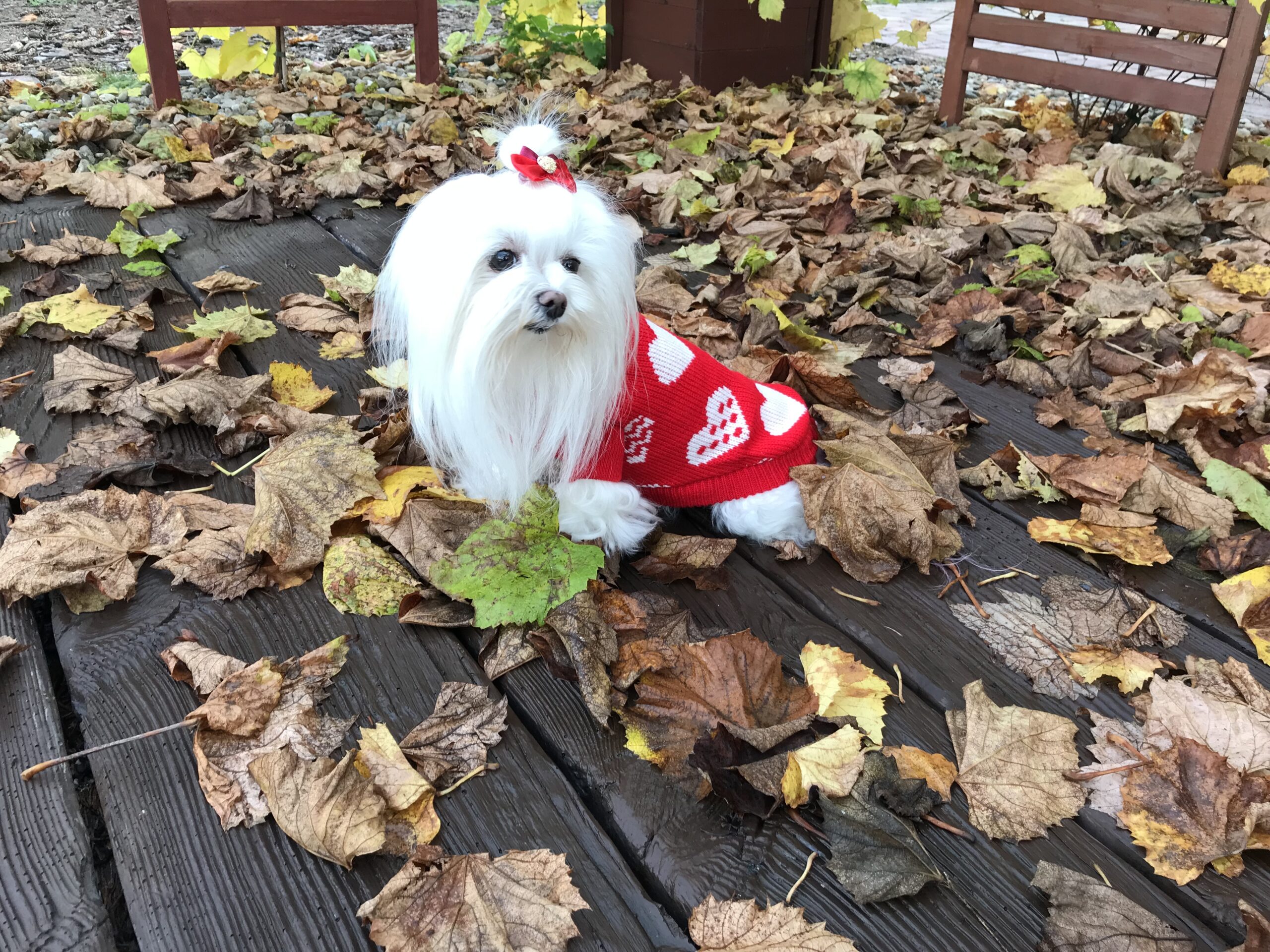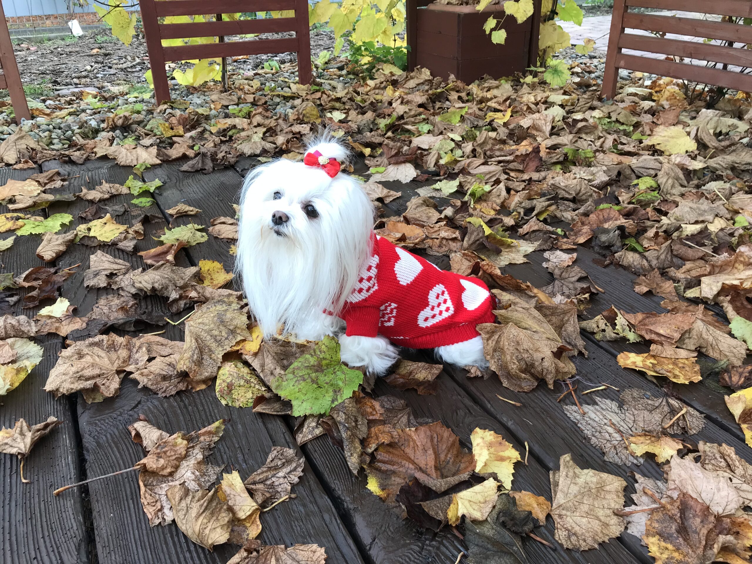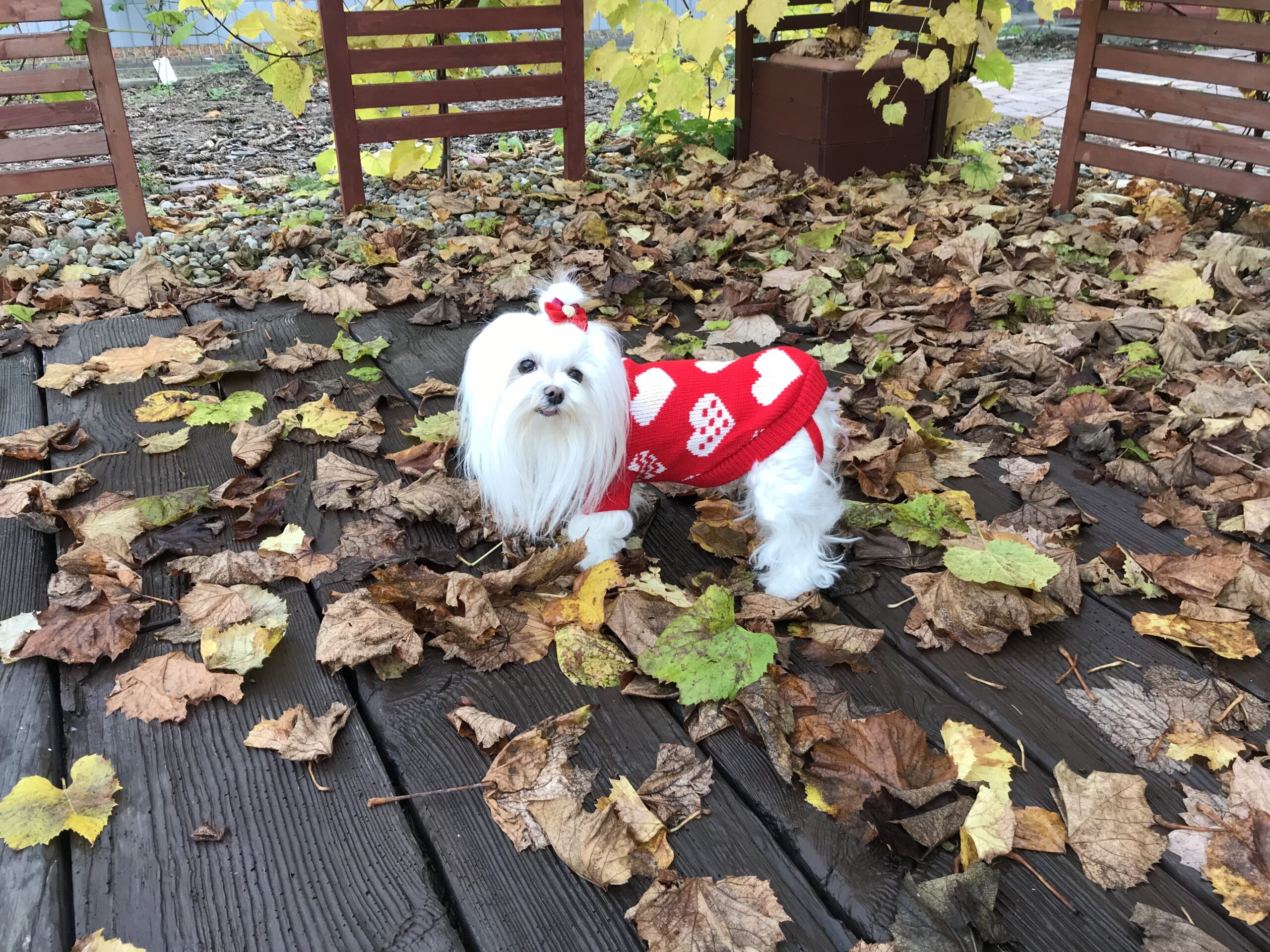 Meine Bella auch Malteser.Gewicht ca 2,5 kg,Rückenlänge 24 cm,Brustumfang 34 cm.Bella braucht Gr.M(10)