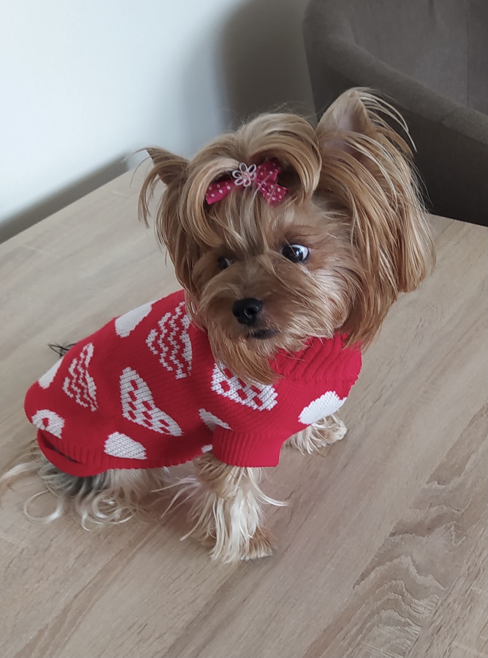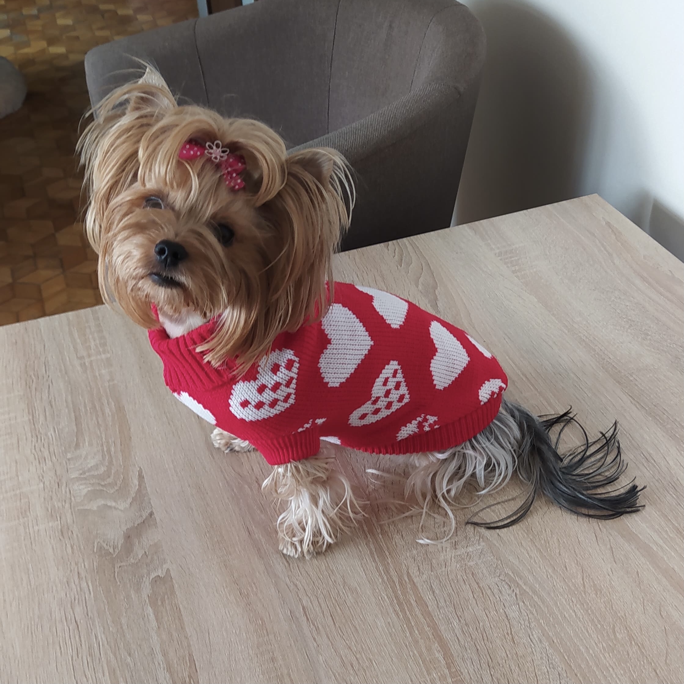 Super niedlicher Strickpullover der sich dem Körper des Hundes anpasst. Am Bauch lang. Besonders gut für Mädchen geeignet,weil der Bauch unten viel bedeckt ist.Der Pulli ist sehr warm und kuschelig weich.