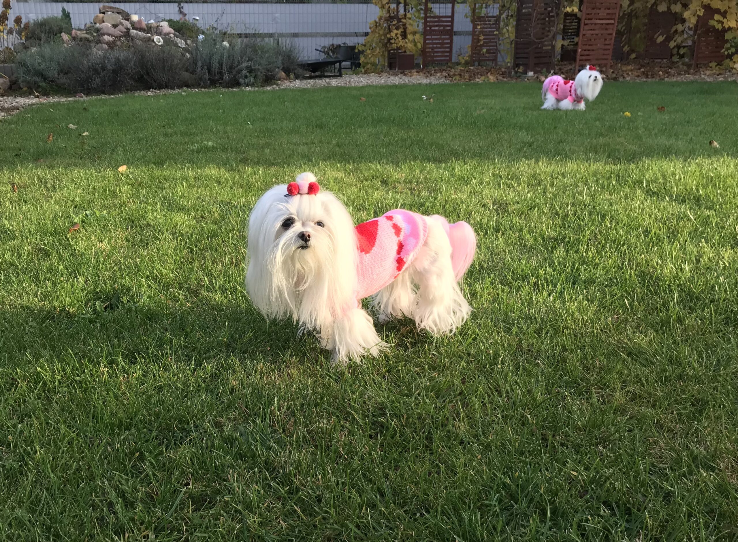 Meine Bella auch Malteser.Gewicht ca 2,5 kg,Rückenlänge 24 cm,Brustumfang 34 cm.Bella braucht Gr.M(10)
