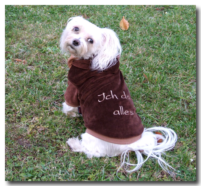 Hunde Jogger aus Nickistoff mit eine Kapuze.Bestens für kalte Tage geeignet.Ihrem Hund wird es nicht zu warm aber er wird gegen Wind und Kälte gut geschützt.Sehr weich und kuschelig.Unten hat der Jogger einen Ausschnitt zum ´´Geschäftchen machen„.Ganz leicht zum anziehen.Der Jogger wird über den Kopf angezogen .Der Jogger bedeckt nicht den ganzen Rücken Ihres Liebling.Der Jogger ist sehr angenehm zu tragen für den Hund.