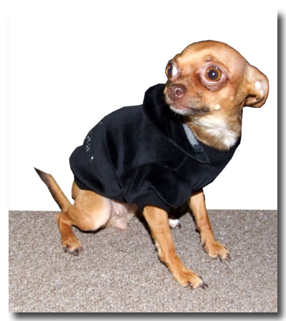 Halsumfang ca 20-23 cm,Brustumfang ca 30-36 cm,Rückenlänge des Hundes 25-27 cm,Gewicht des Hundes ca .2,5-3 kg ,Pulli- Länge mit Bund ca.29 cm