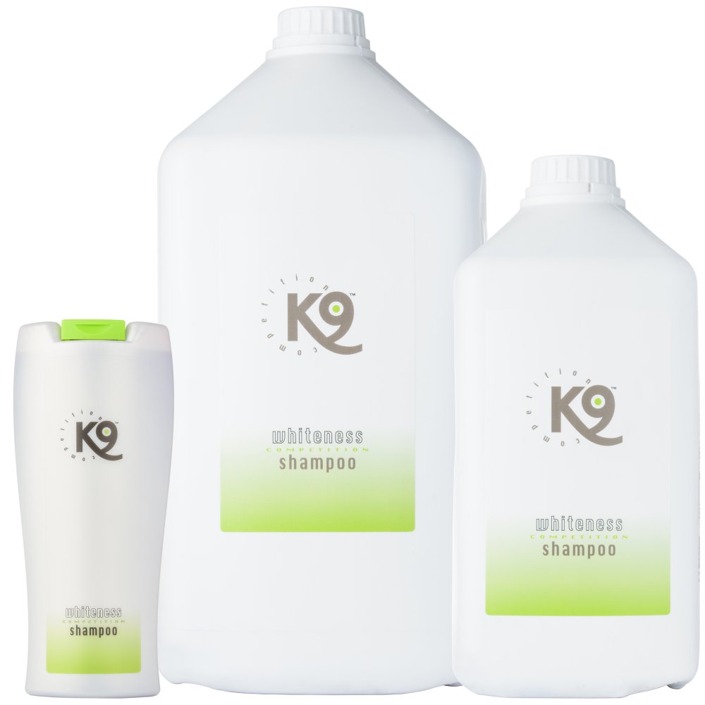 Sanftes Aloe Shampoo für weißes und helles Haar K9 Whiteness Shampoo. Die Verwendung von optischen Aufhellern belebt und verbessert sicher den Weißgrad des Haares und betont die helle Farbe des Fells des Tieres. Es verleiht ihm ein natürliches, strahlendes Aussehen. Es kann zur Pflege von Haustieren mit empfindlicher, zu Allergien neigender Haut verwendet werden. Es reinigt die Haut und das Haar des Tieres, ohne die natürliche Schutzschicht zu beeinträchtigen oder abzuwaschen. Es enthält Aloe Vera, Provitamin B5 und Weizenproteine. Es beruhigt und befeuchtet trockene Epidermis, reduziert ihre Trockenheit, Rötung und Ablösung. Geeignet für Hunde, Katzen und andere Haustiere.