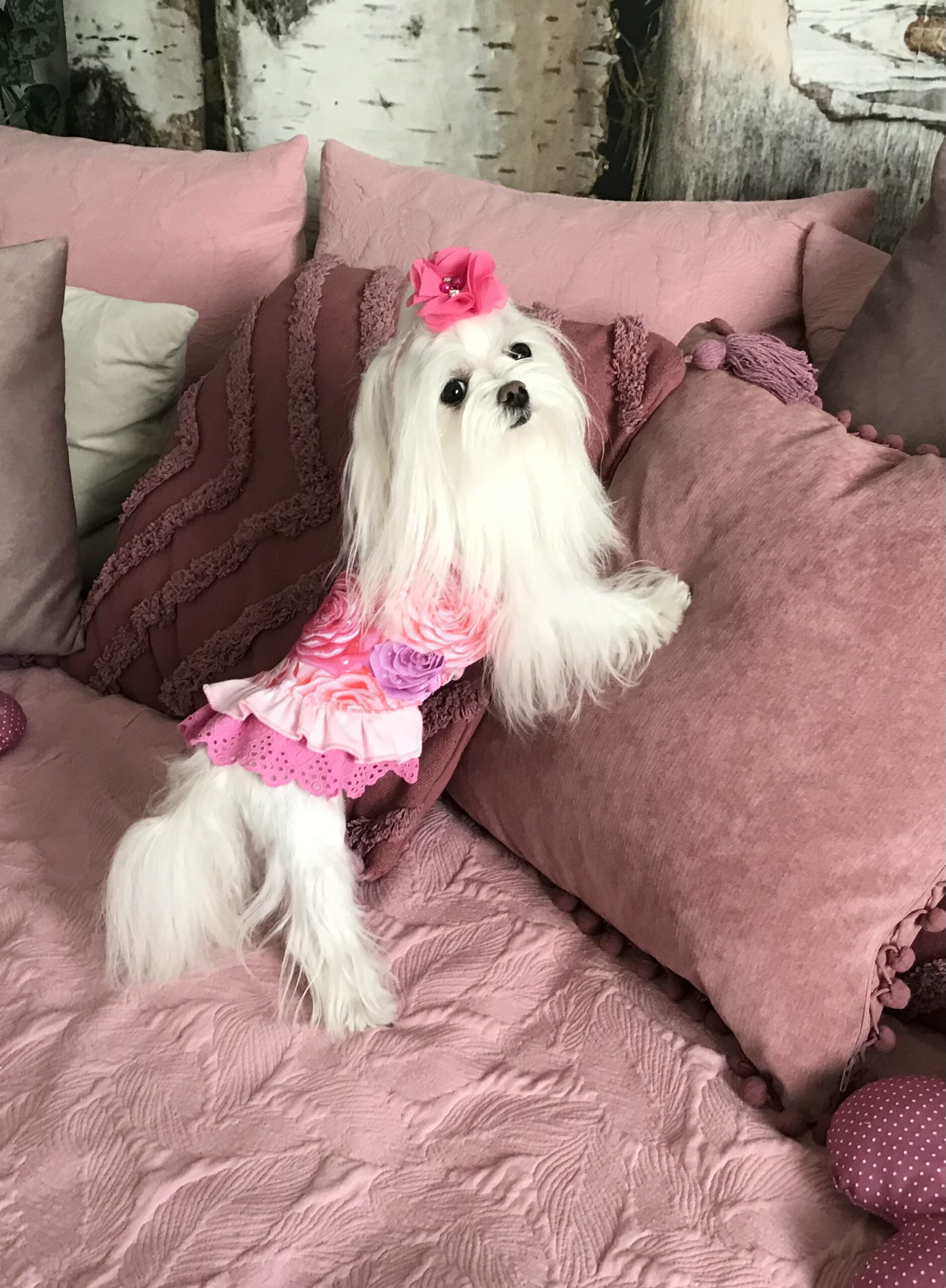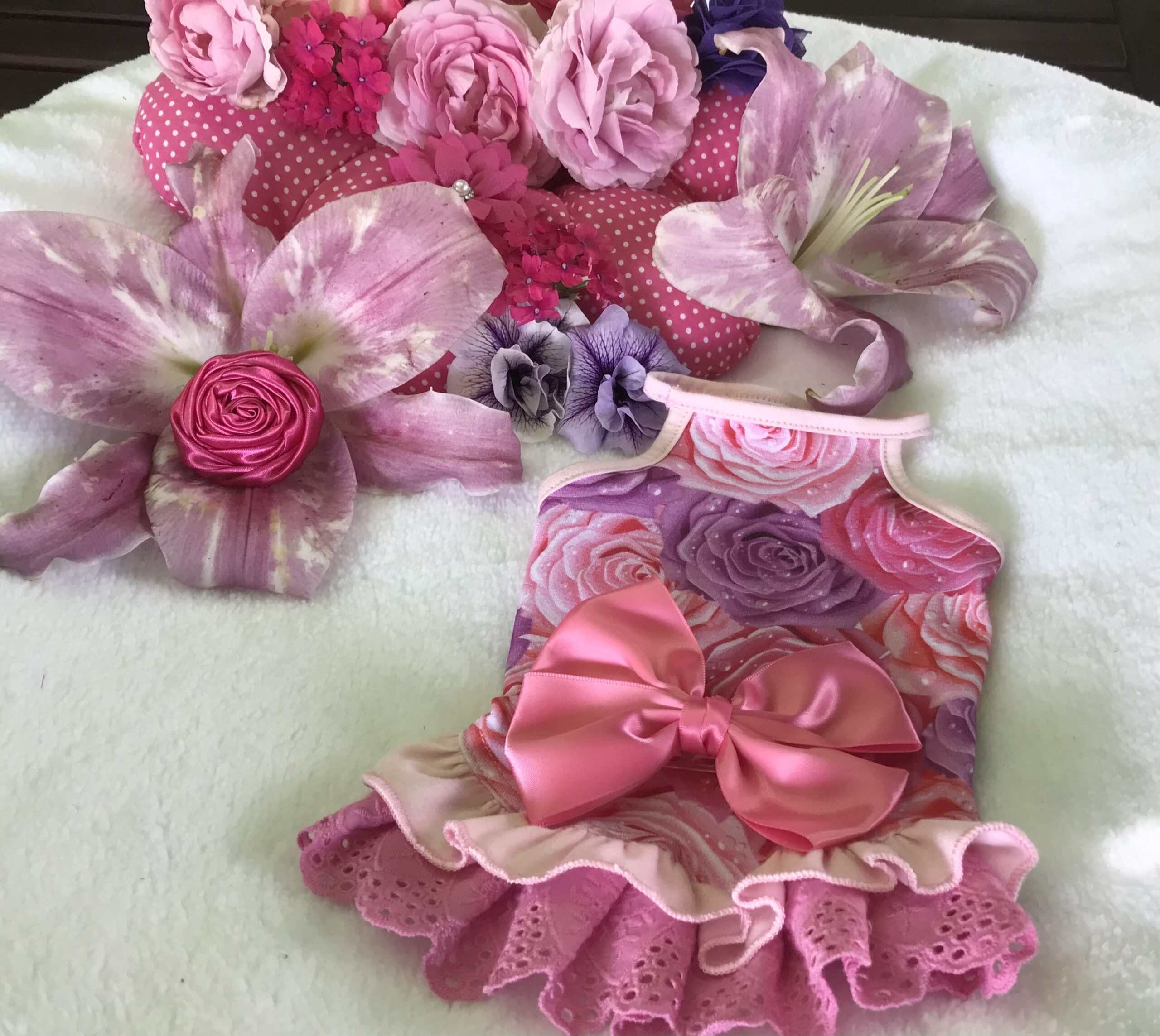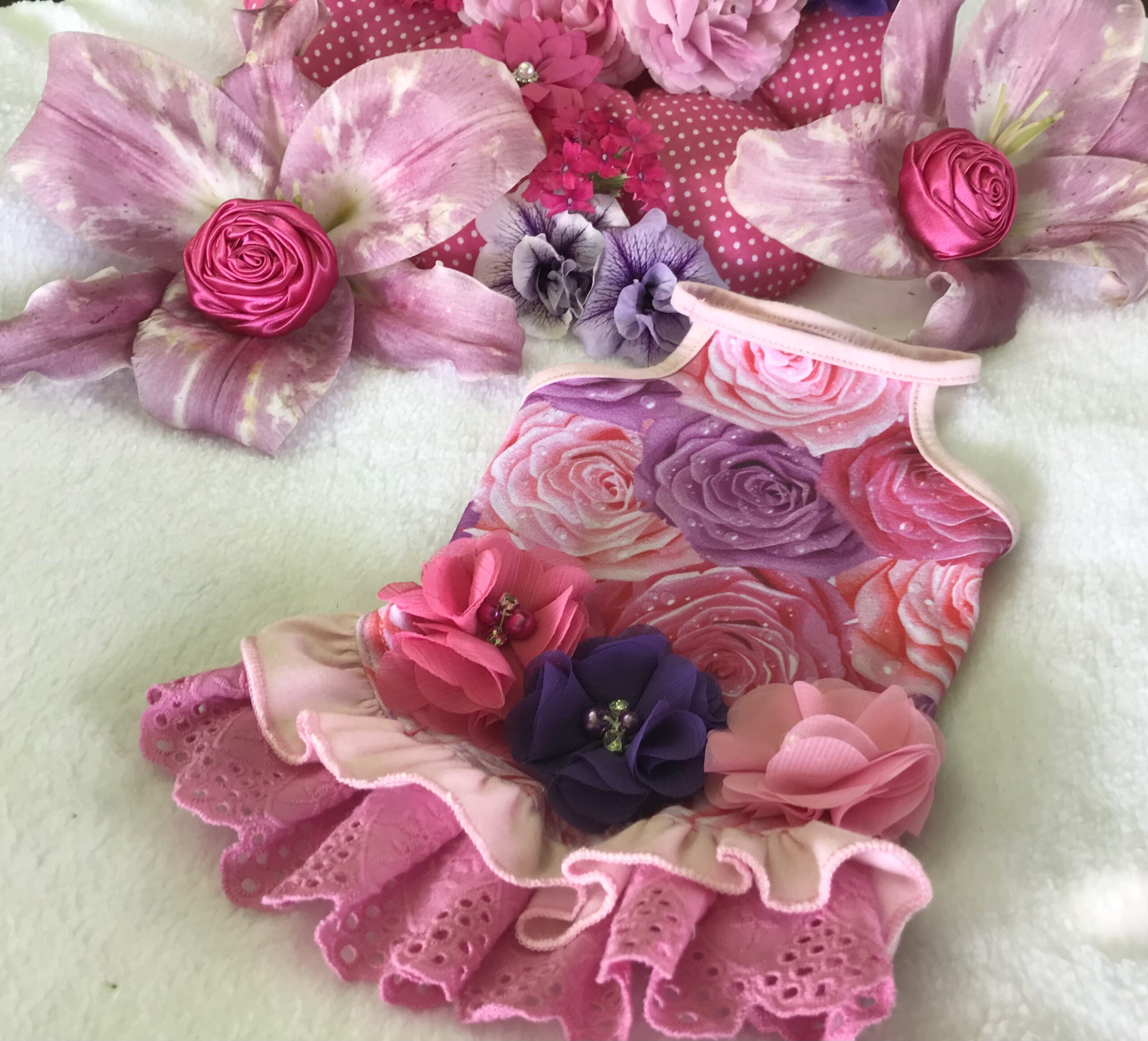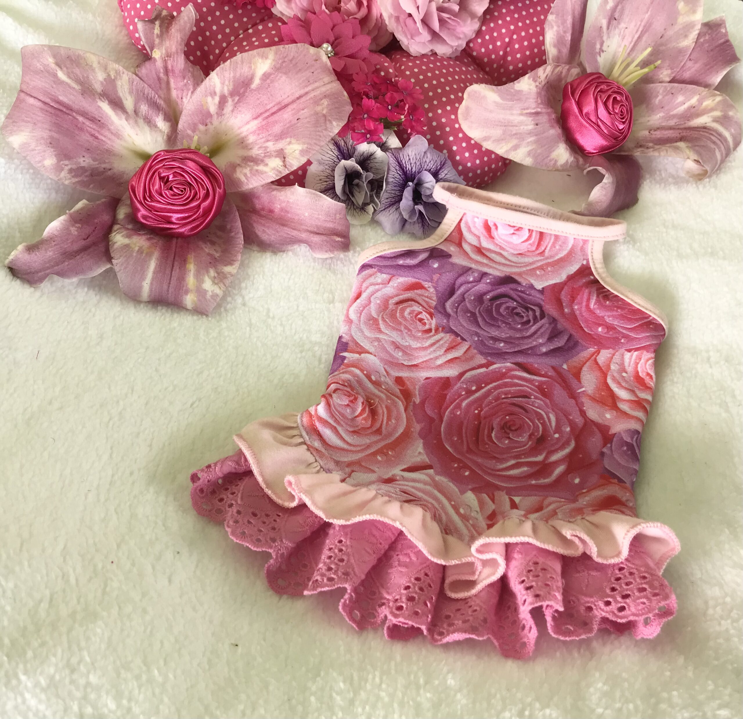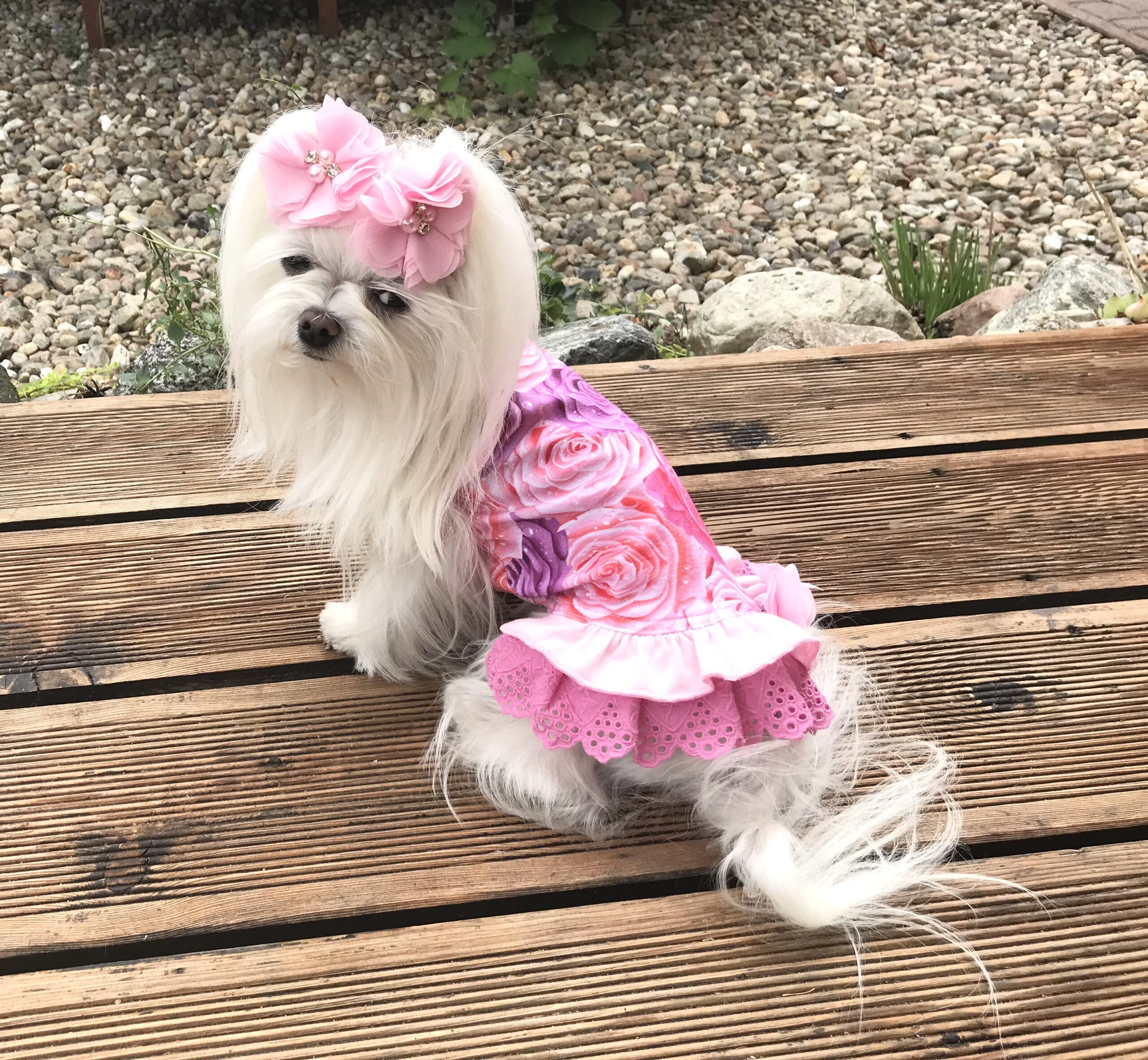 Halsumfang ca. 26-29cm,Brustumfang ca 40-44cm,Rückenlänge des Hundes 28-32cm,Gewicht des Hundes ca .4-5 kg, Länge Inkl.Rüschen ca.30-31cm
