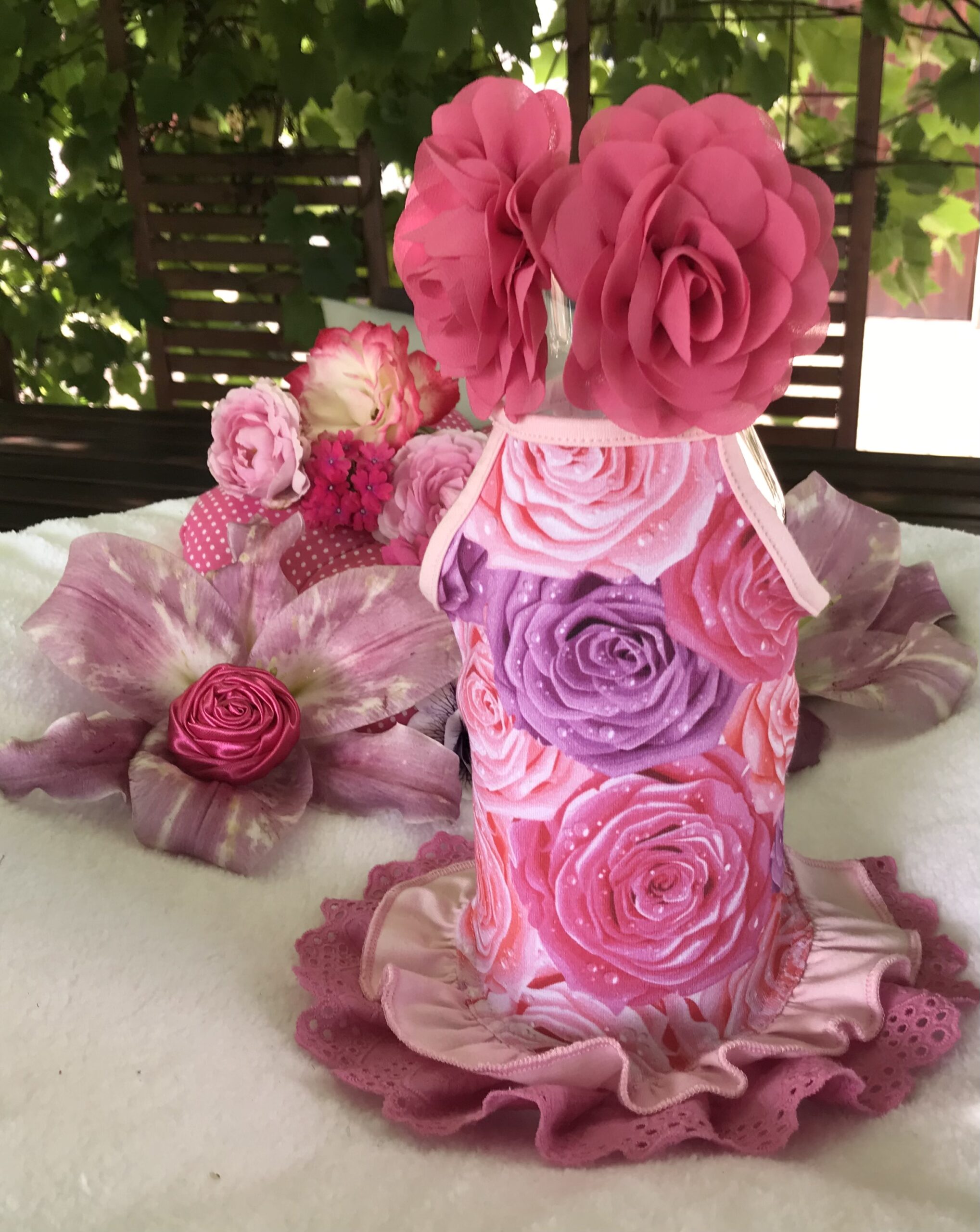 Halsumfang ca. 24-27 cm,Brustumfang ca 36-40 cm,Rückenlänge des Hundes 28-32cm,Gewicht des Hundes ca .3,5-4,5kg, Länge Inkl.Rüschen ca.28-29 cm