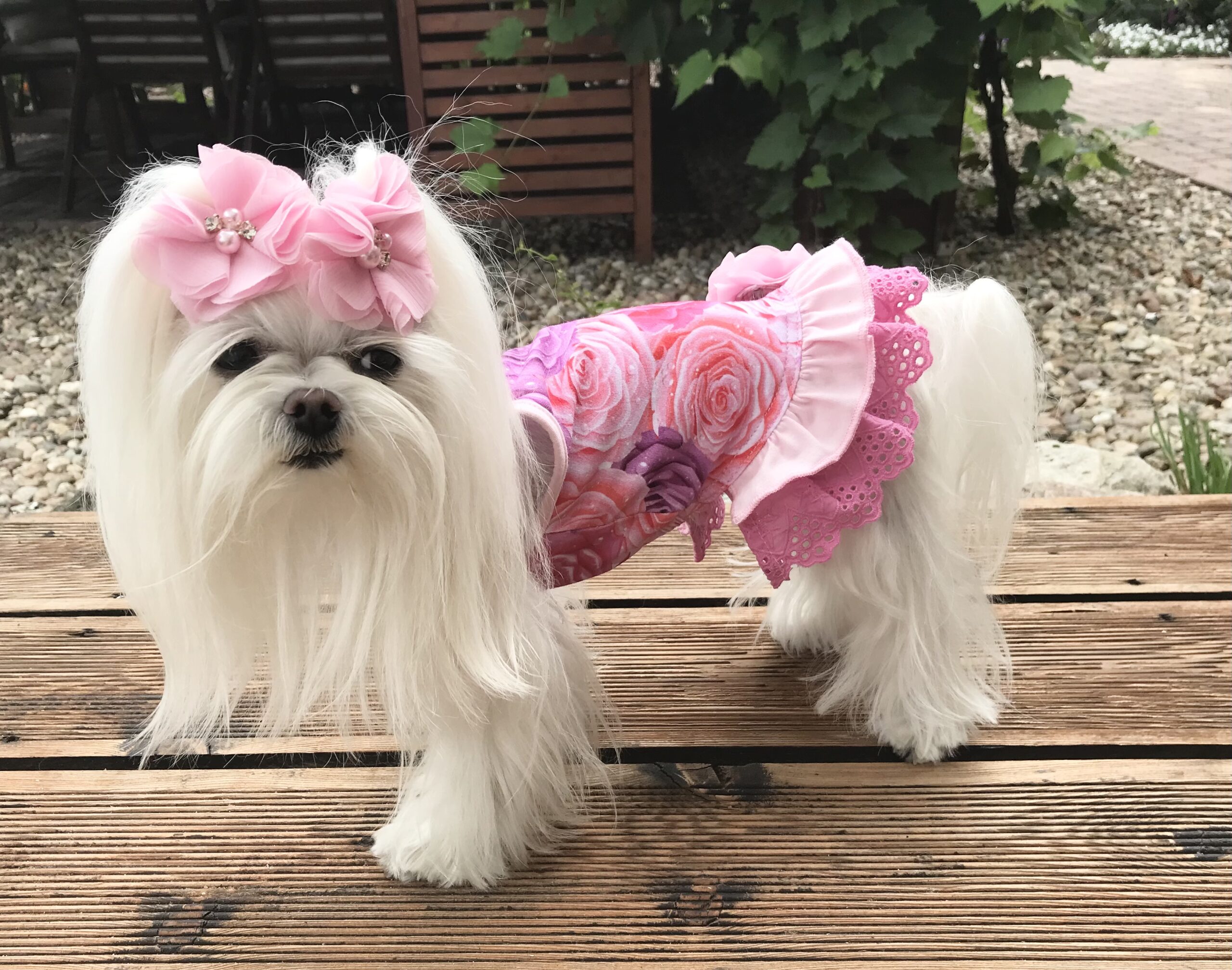 Halsumfang ca 19-22 cm,Brustumfang ca 28-34 cm,Rückenlänge des Hundes 21-25cm,Gewicht des Hundes ca .2 -2,5 kgLänge inkl.Rüschen ca.24-25cm