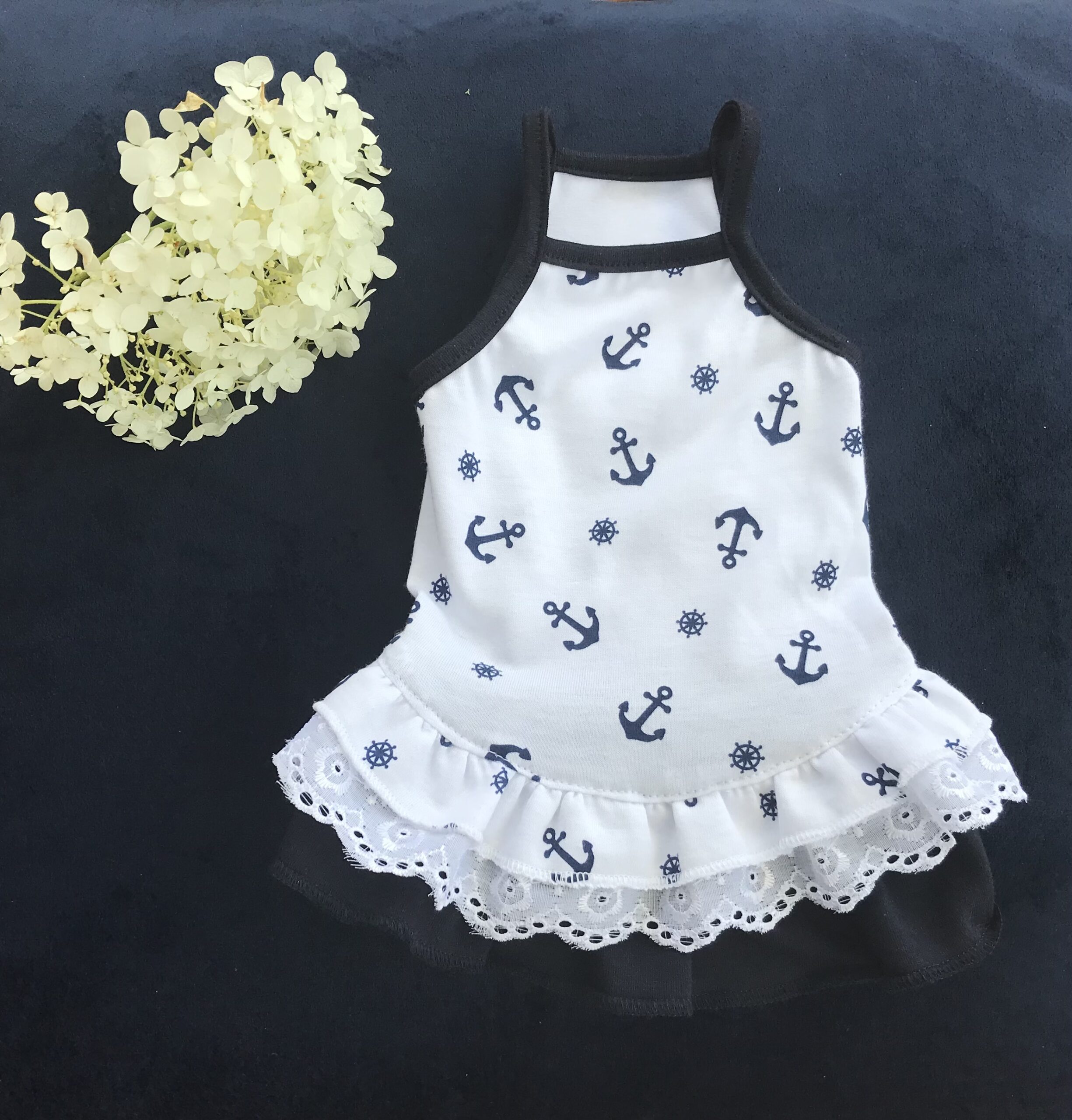 Halsumfang ca 19-22 cm,Brustumfang ca 28-34 cm,Rückenlänge des Hundes 21-25cm,Gewicht des Hundes ca .2 -2,5 kgLänge inkl.Rüschen ca.24-25cm