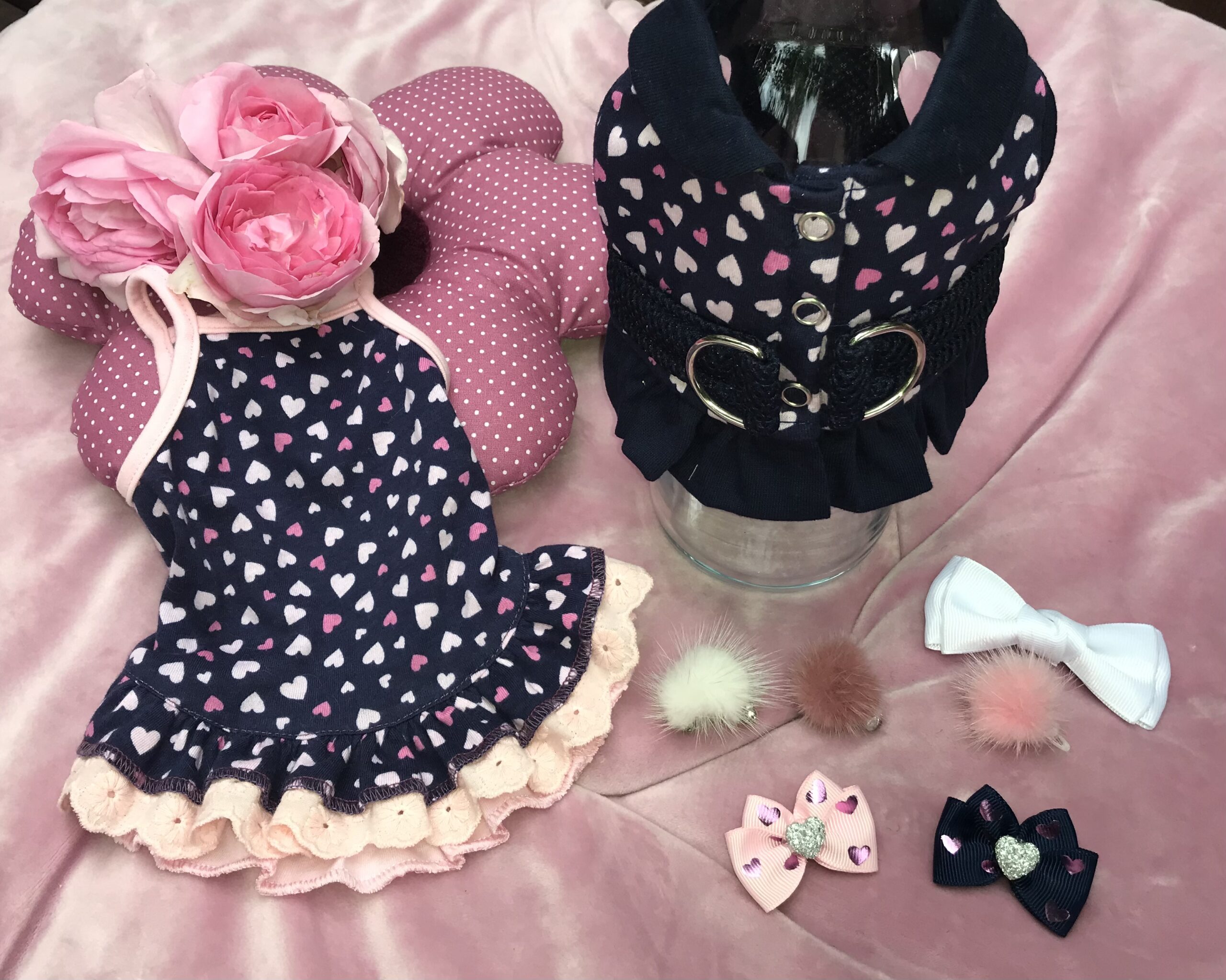 Farbe : dunkelblau,rosa mit Herzenmuster