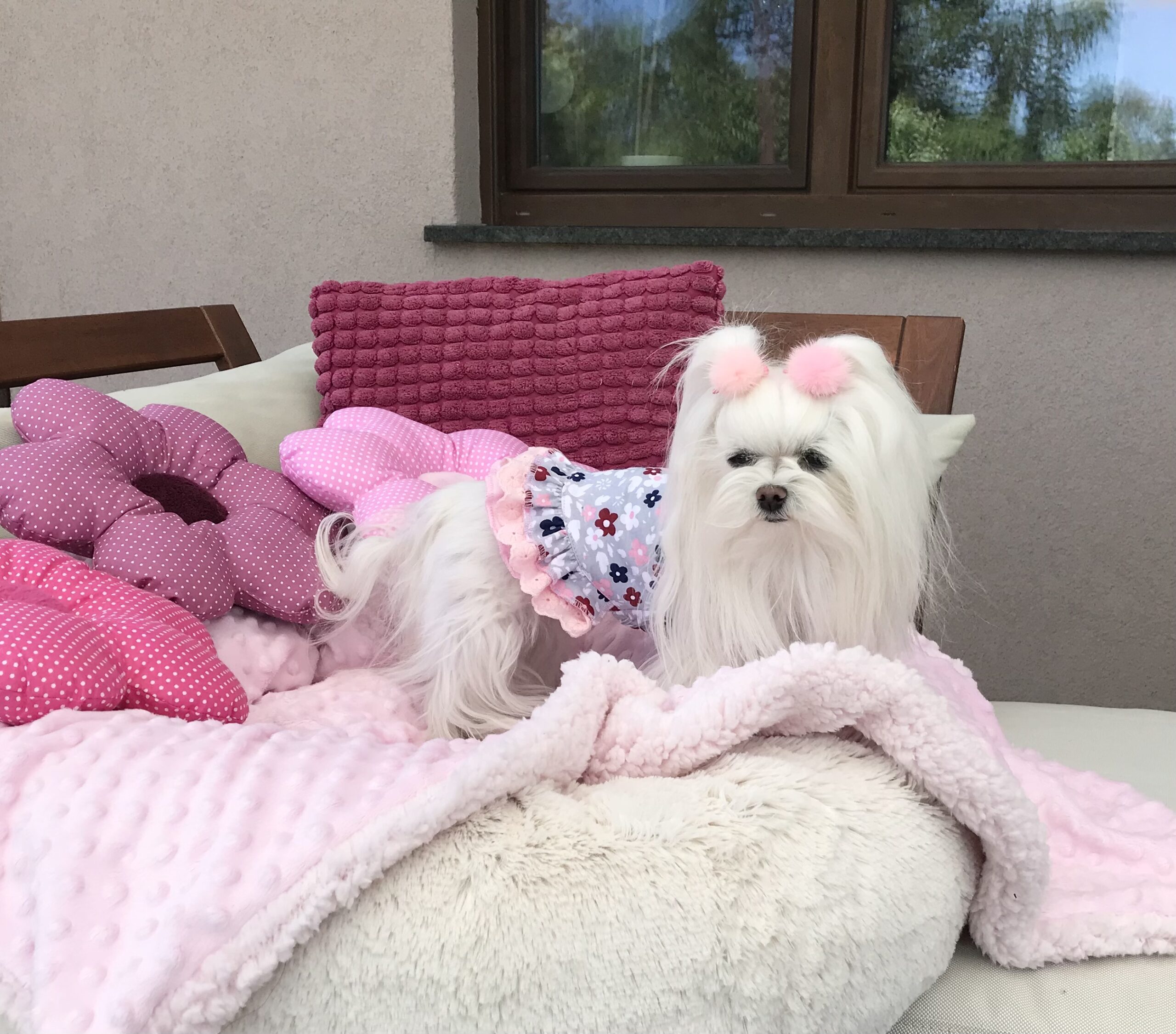 Halsumfang ca. 24-27 cm,Brustumfang ca 36-40 cm,Rückenlänge des Hundes 28-32cm,Gewicht des Hundes ca .3,5-4,5kg, Länge Inkl.Rüschen ca.28-29 cm
