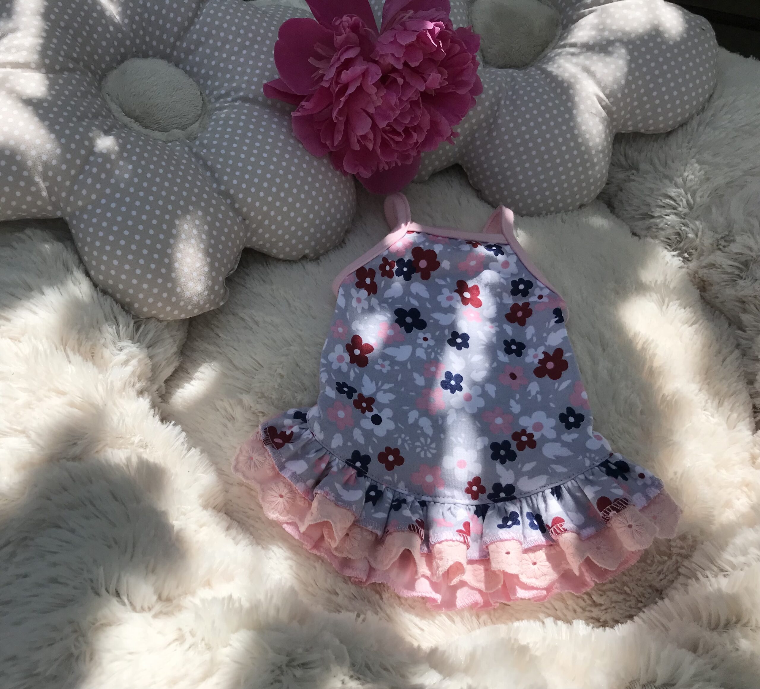 Halsumfang ca. 26-29cm,Brustumfang ca 40-44cm,Rückenlänge des Hundes 28-32cm,Gewicht des Hundes ca .4-5 kg, Länge Inkl.Rüschen ca.30-31cm