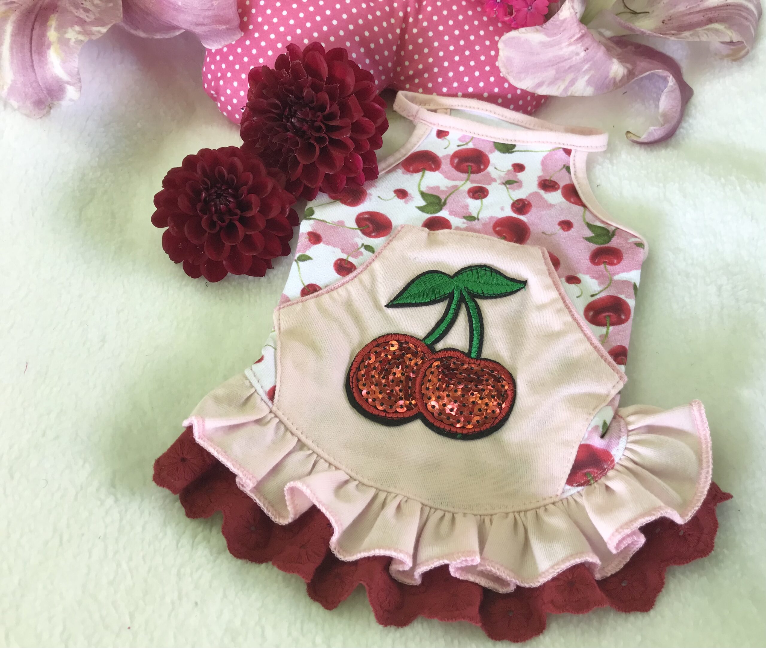 Farbe : weiß-rosa-weinrot mit Cherry Muster