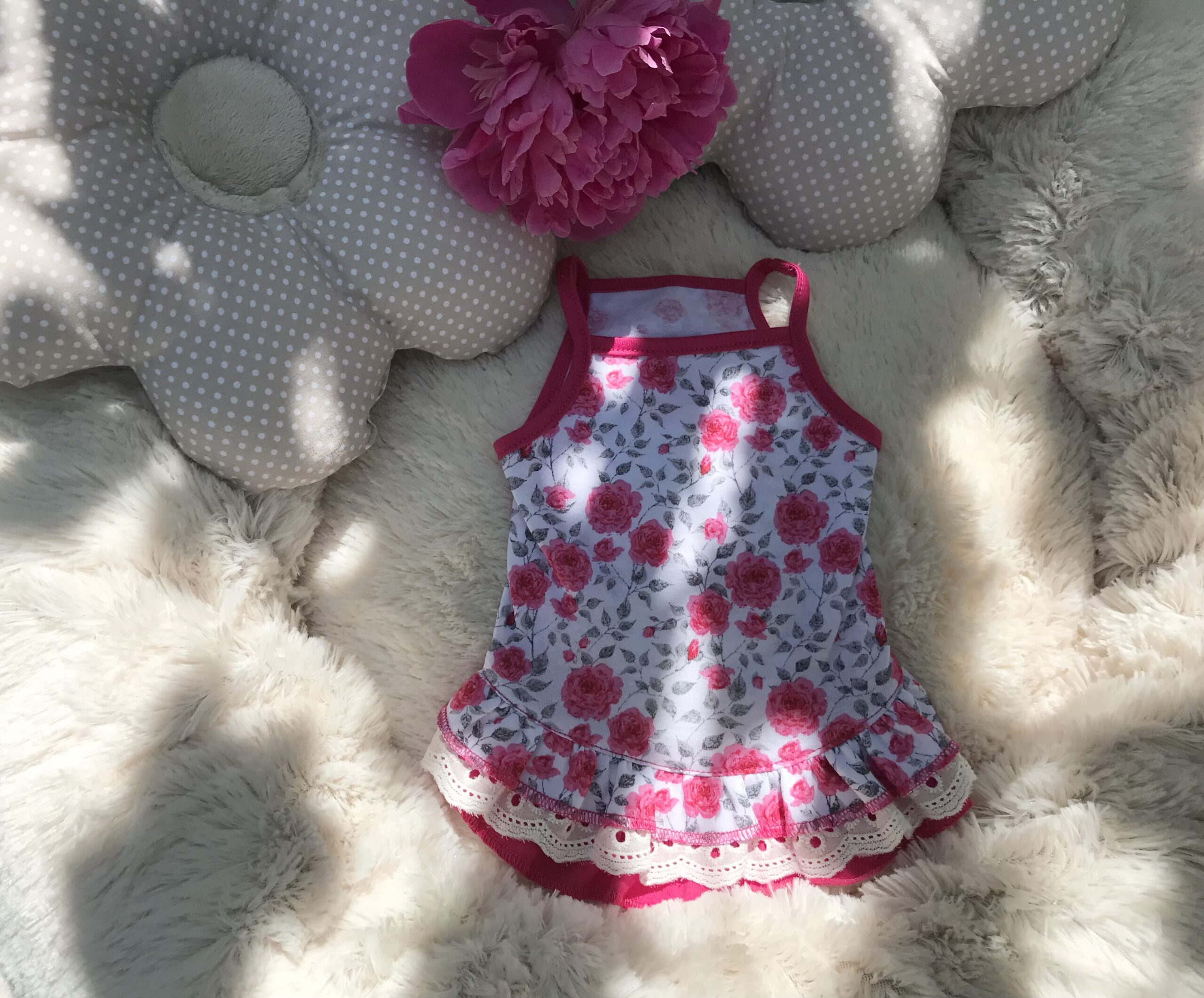 Halsumfang ca. 26-29cm,Brustumfang ca 40-44cm,Rückenlänge des Hundes 28-32cm,Gewicht des Hundes ca .4-5 kg, Länge Inkl.Rüschen ca.30-31cm